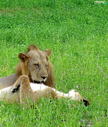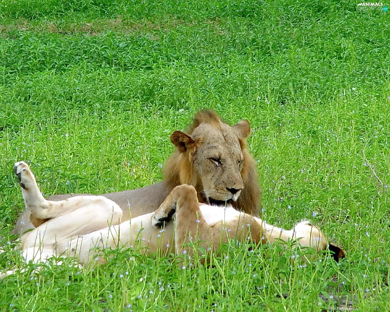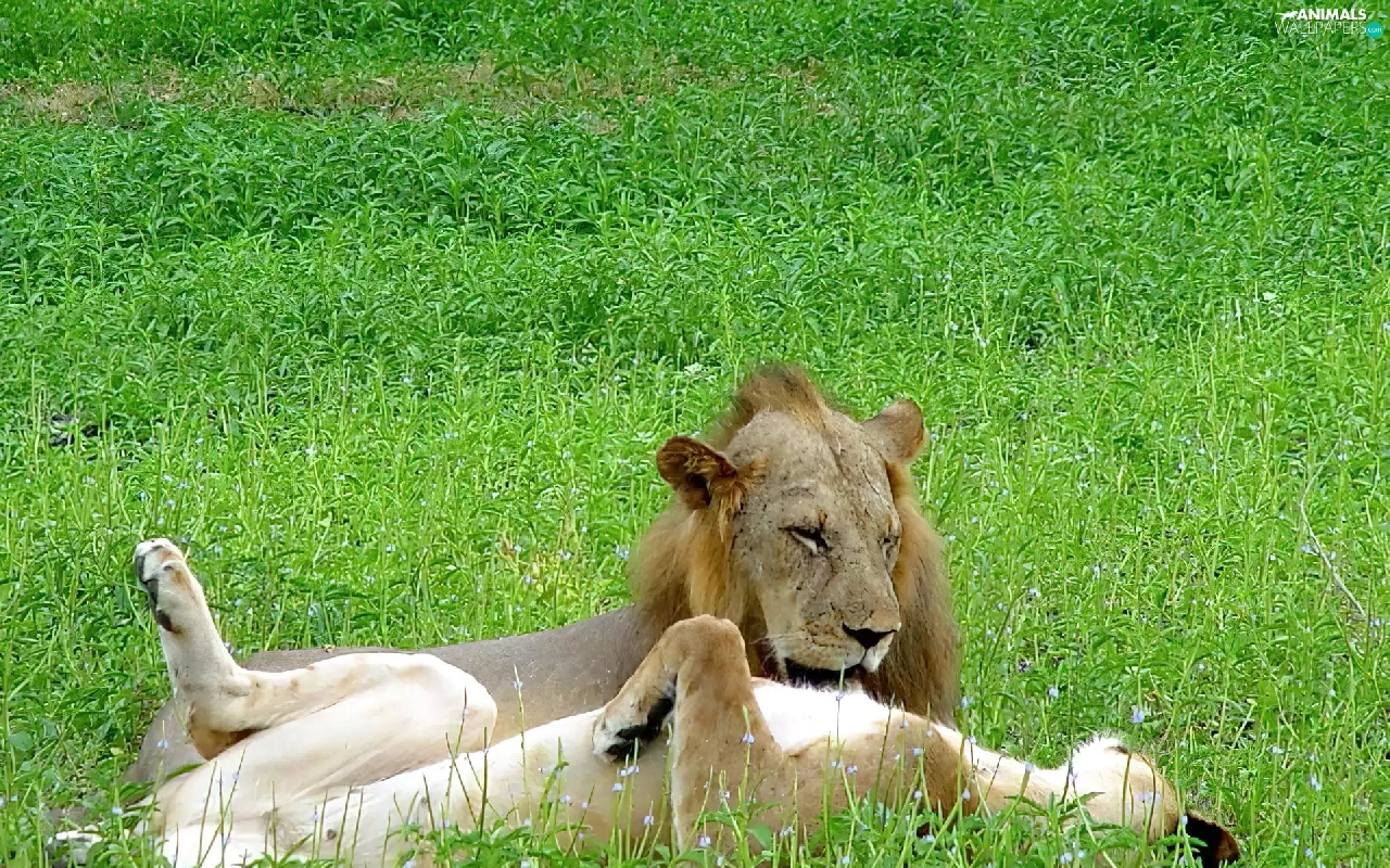 grass, Lion, prey