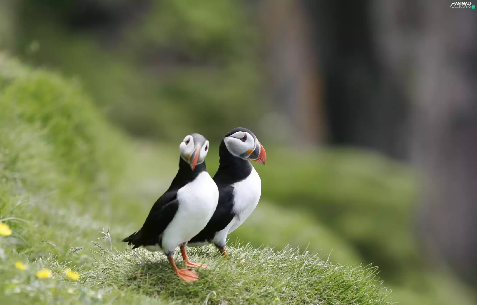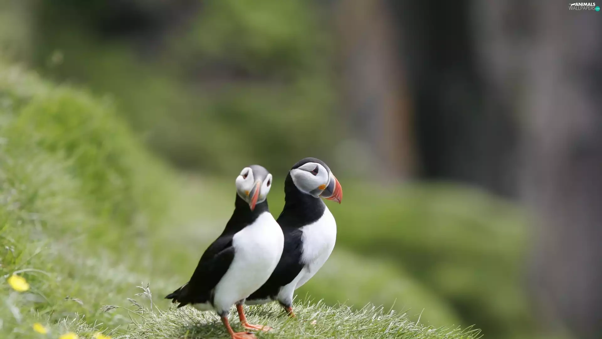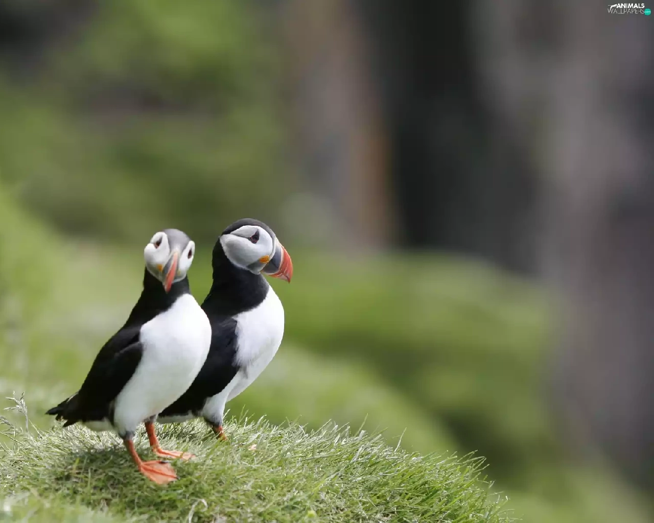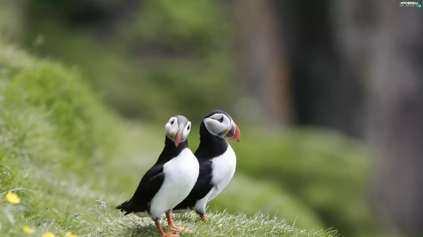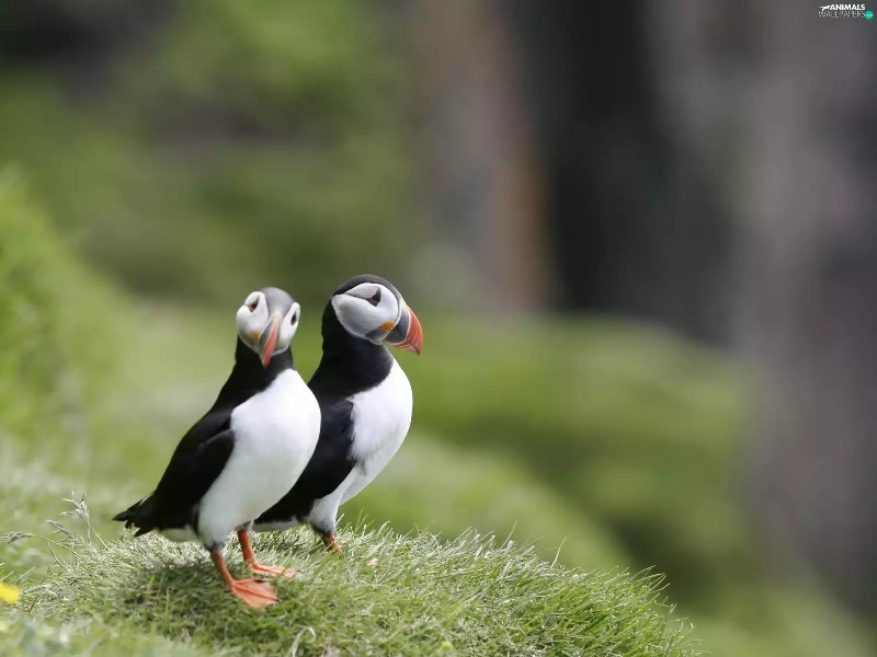 grass, birds, Puffins