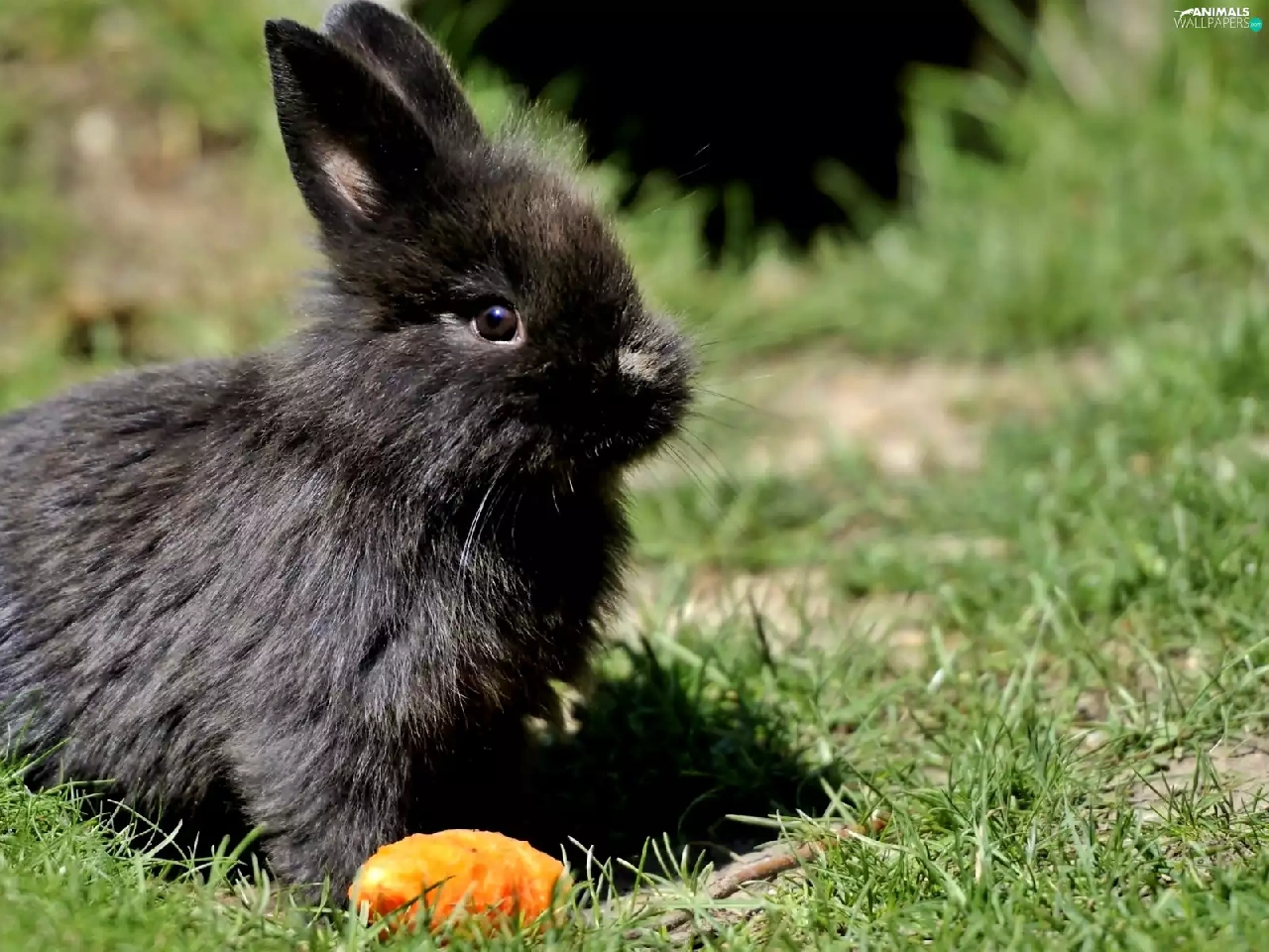 grass, Black, Rabbit