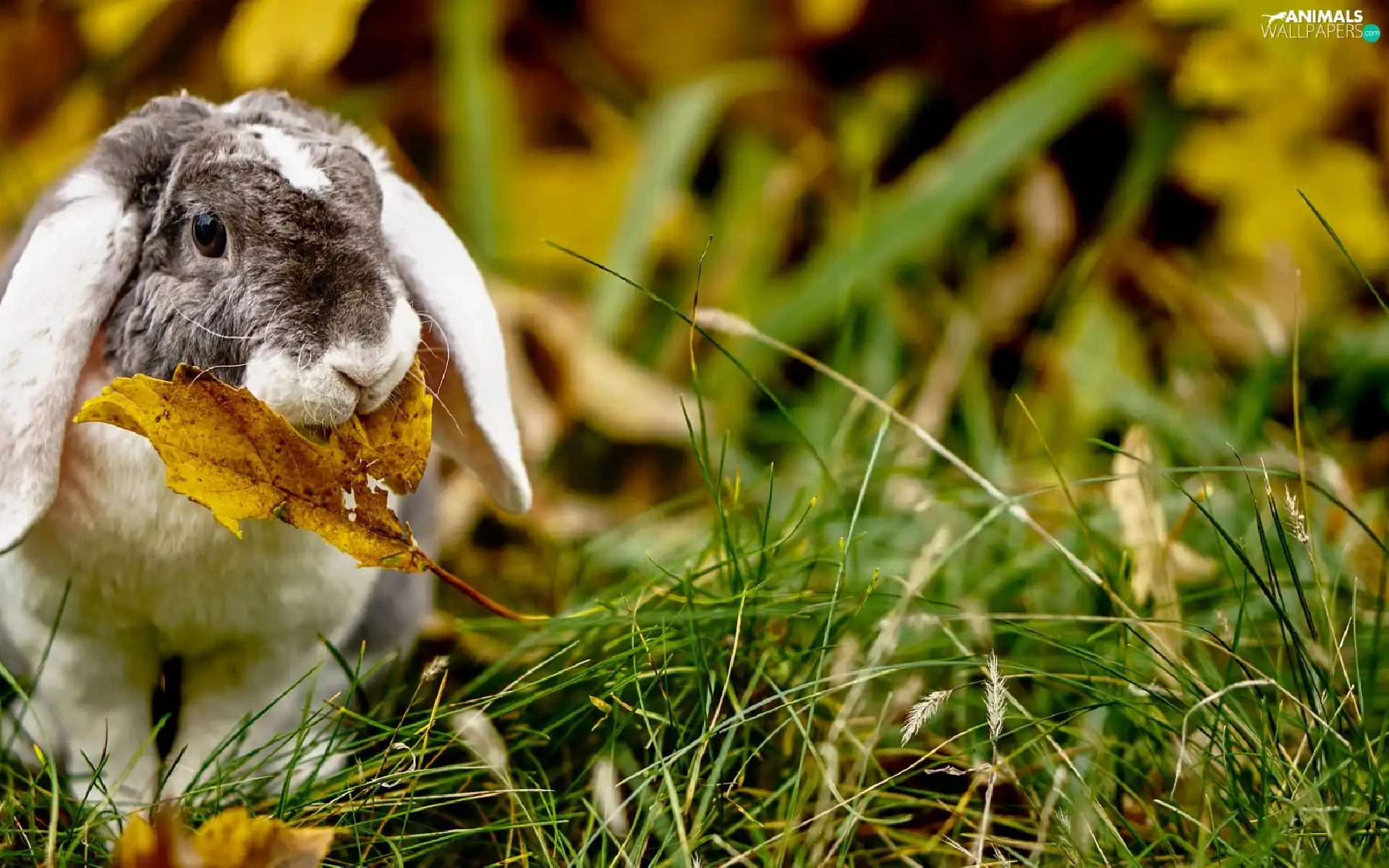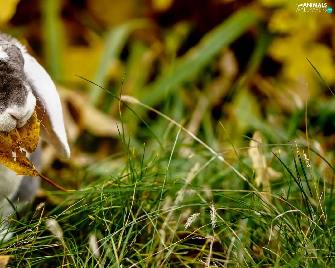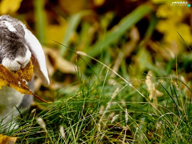 Rabbit, Yellow, leaf, grass