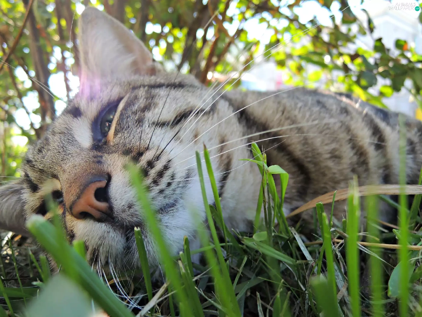 grass, cat, resting