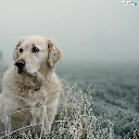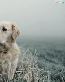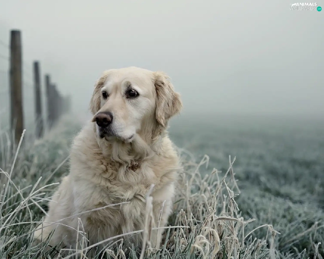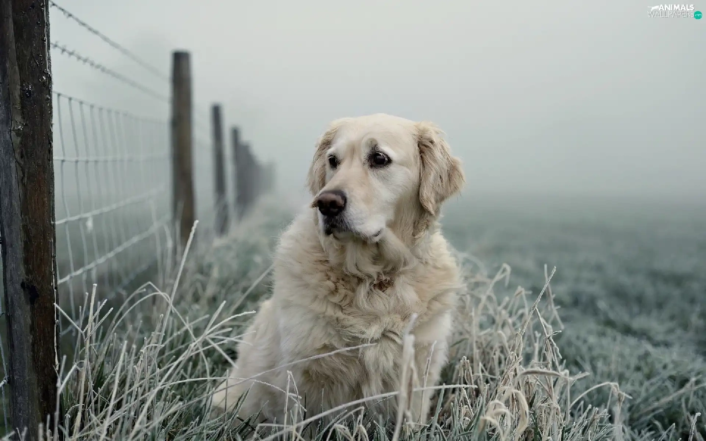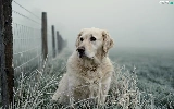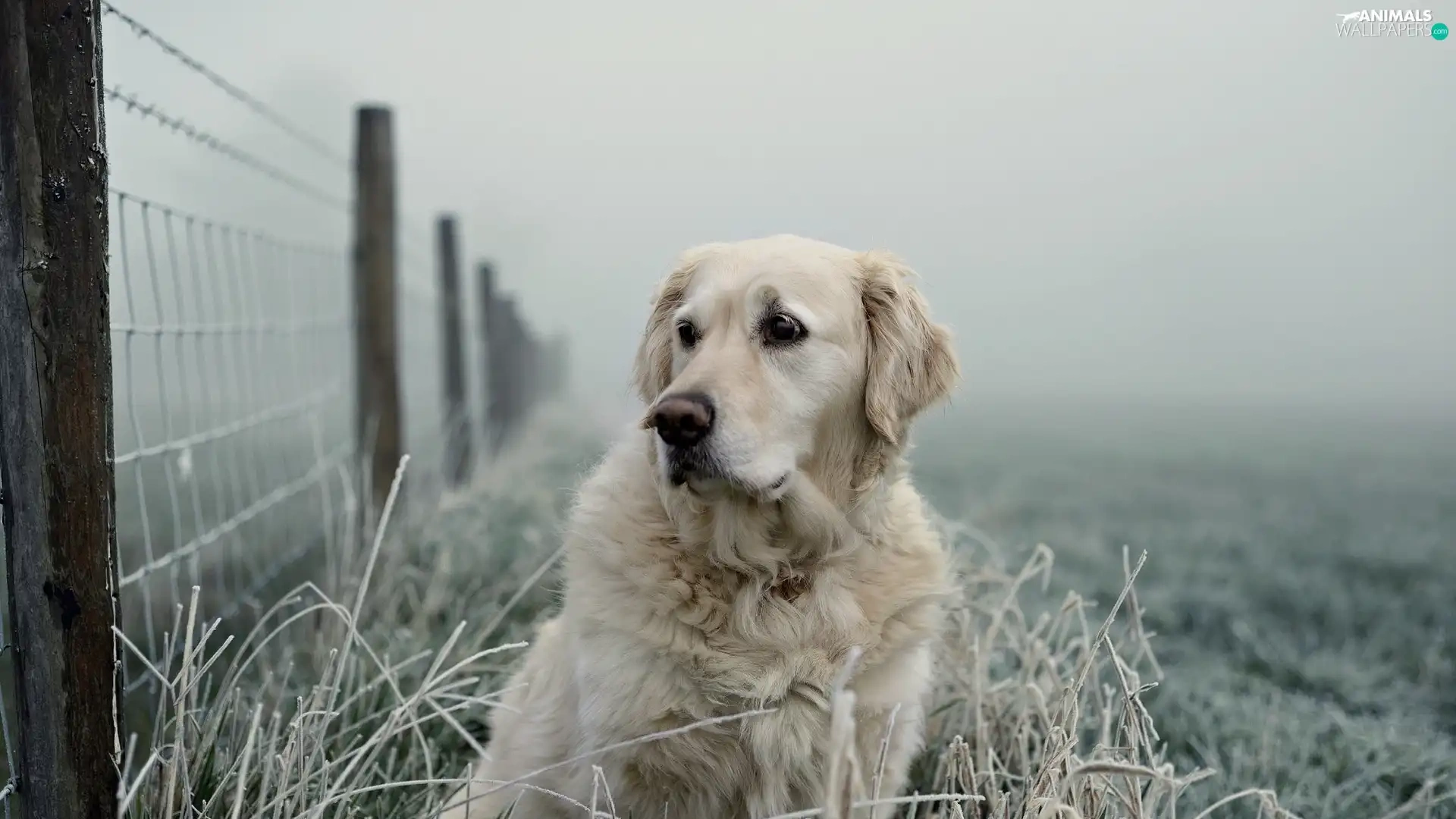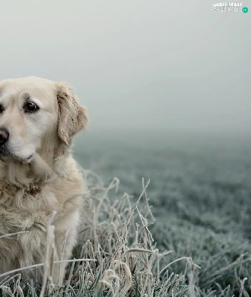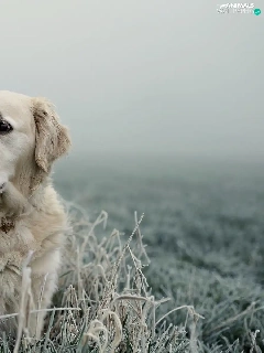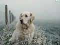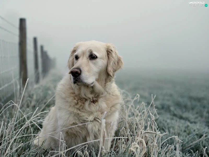 Golden Retriever, frosted, grass, Fance