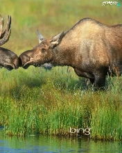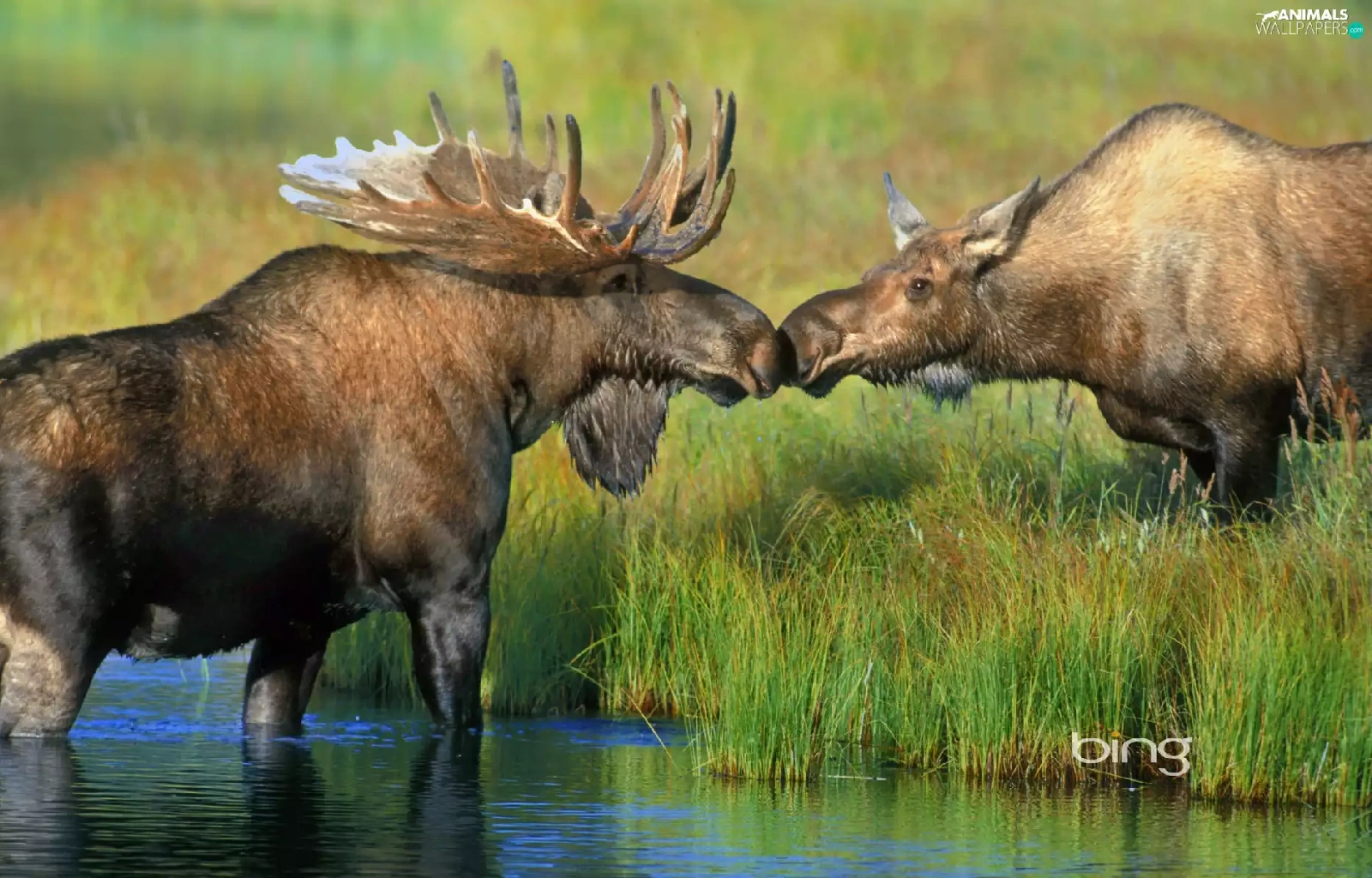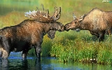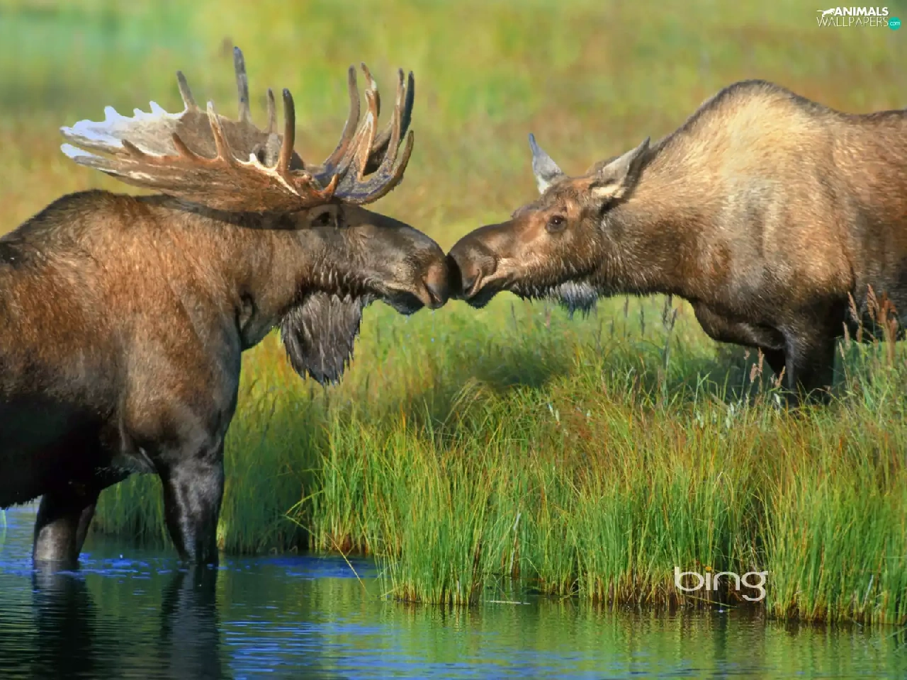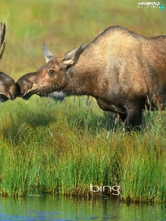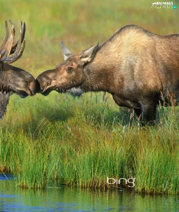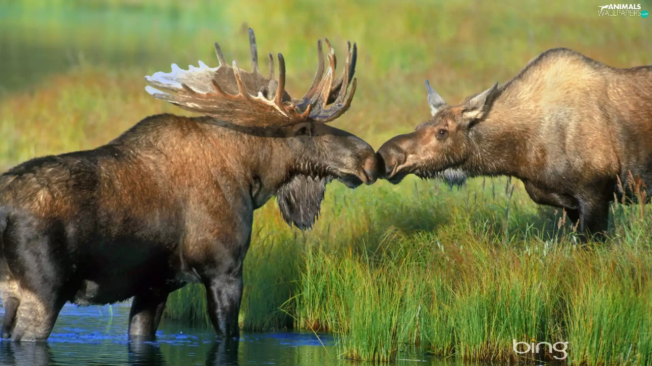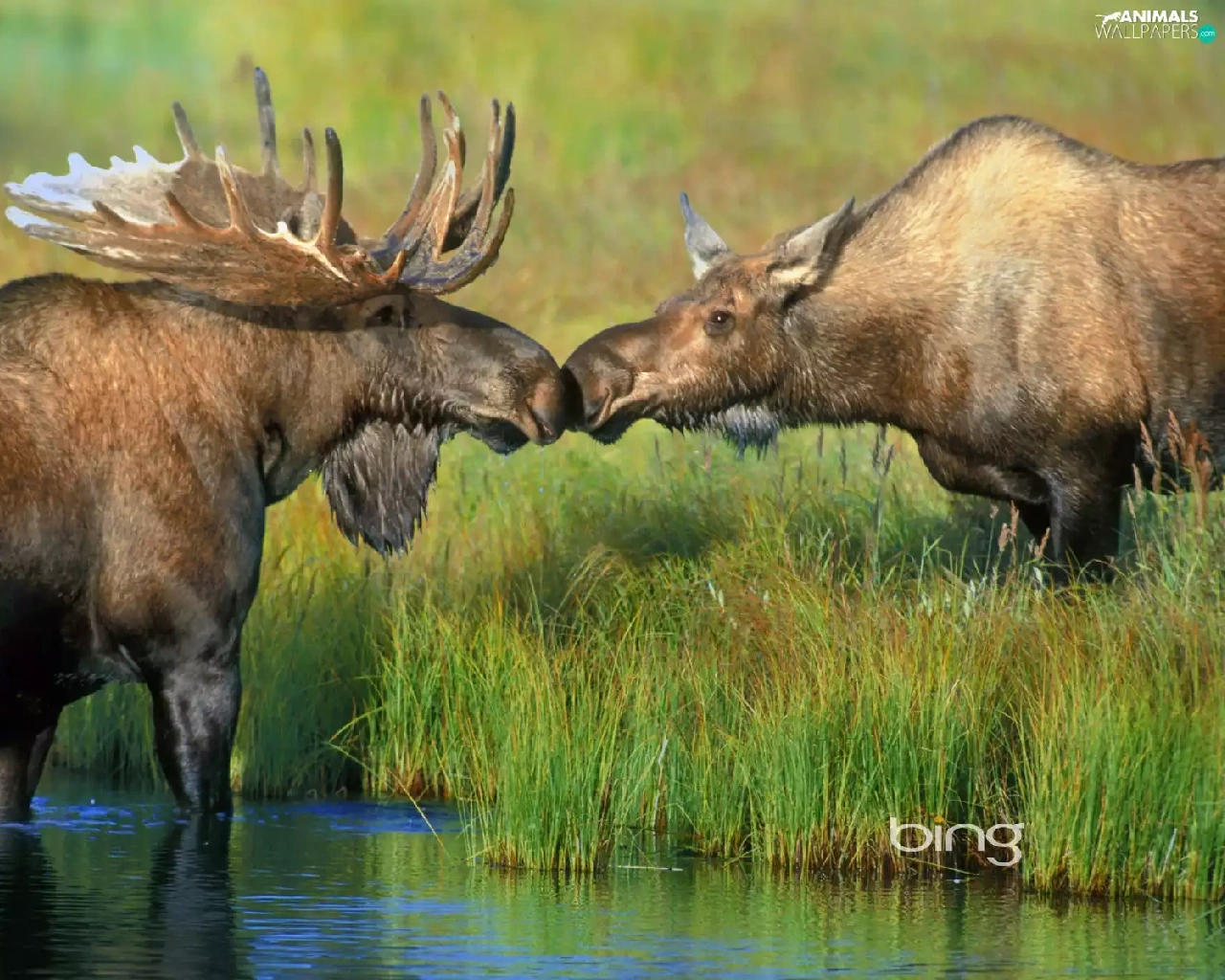 grass, elks, River