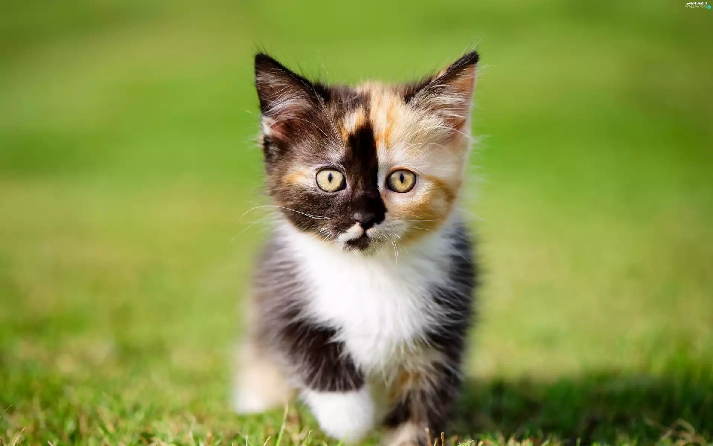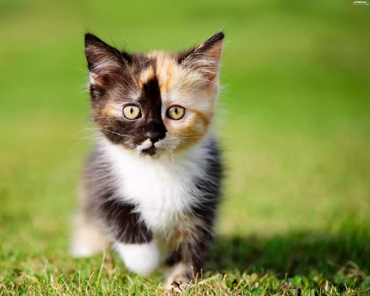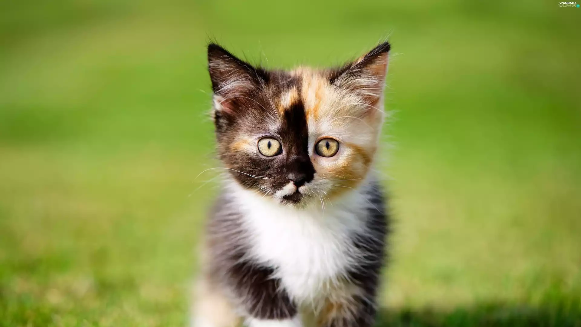 kitten, grass, small, color, honeyed