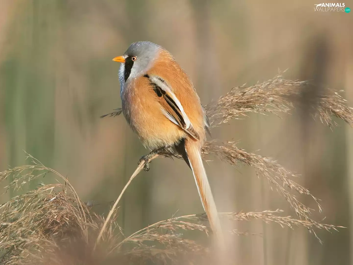 Bird, grass, stalk, Bearded Tit
