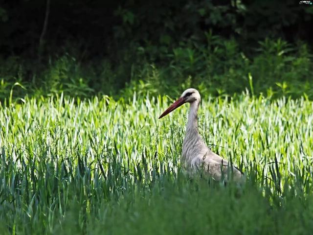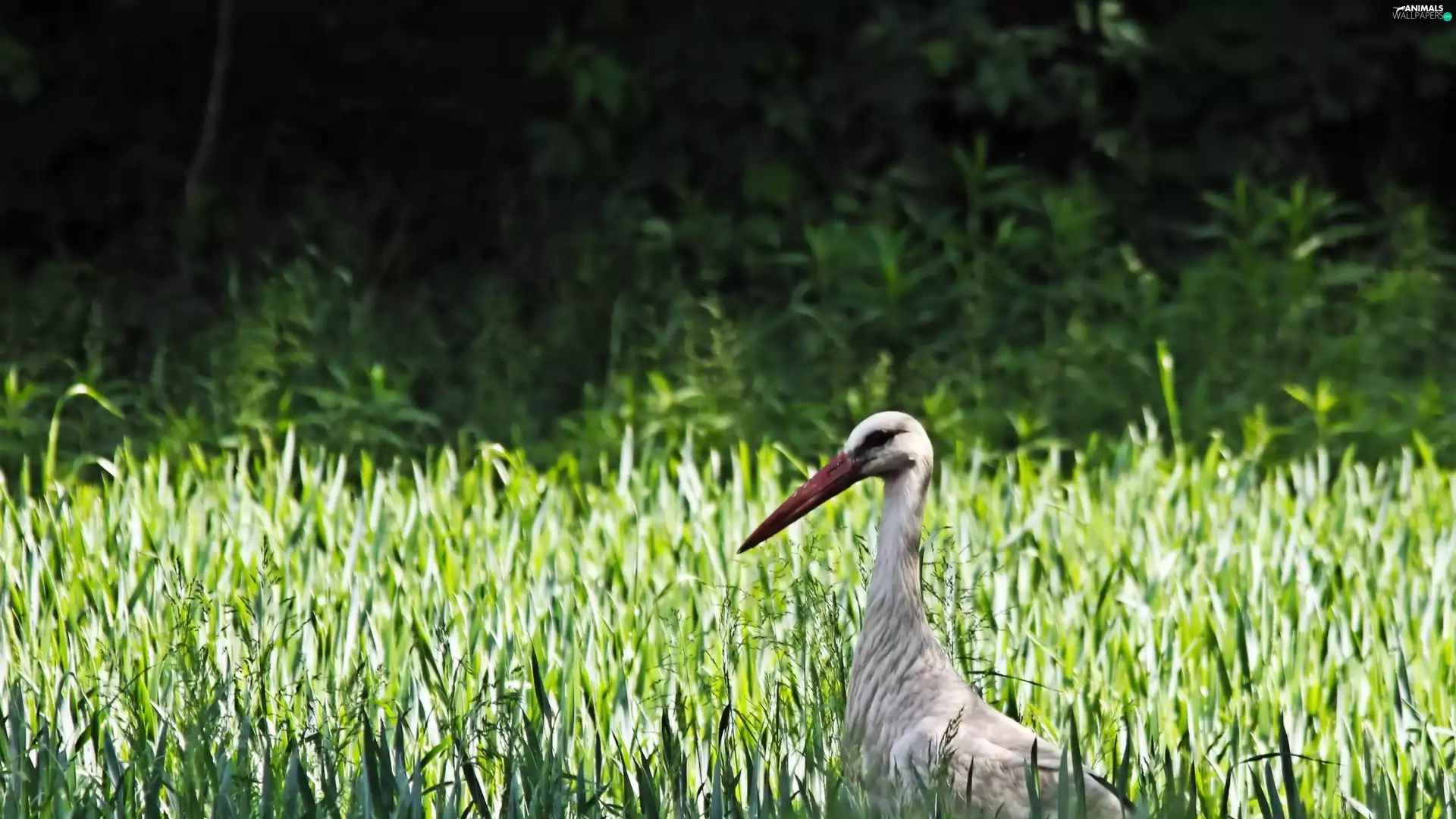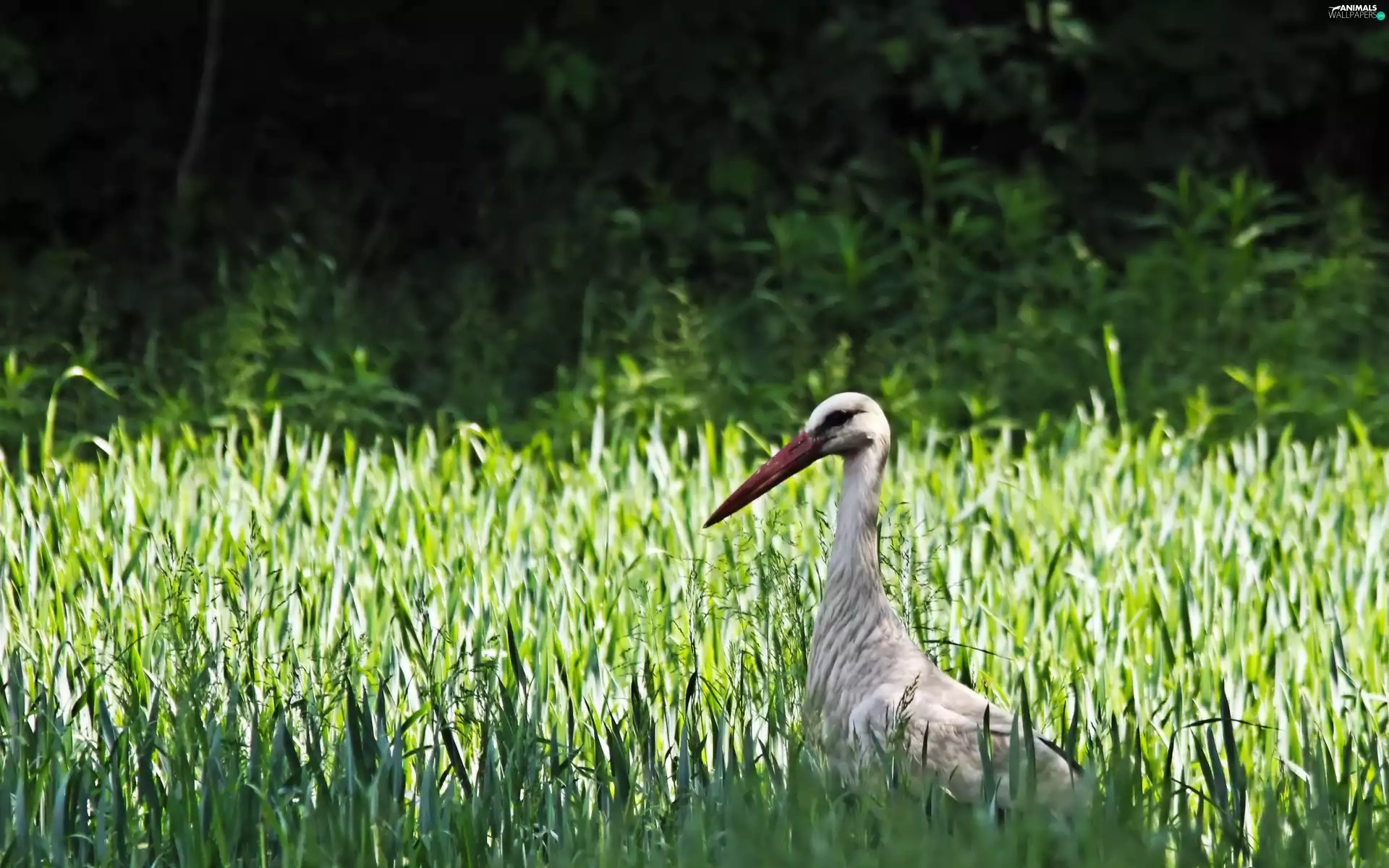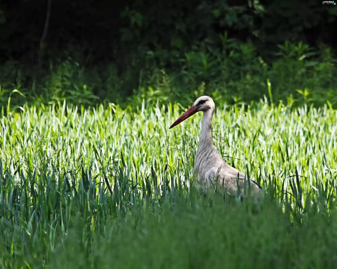 grass, Bird, stork