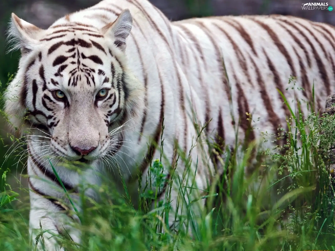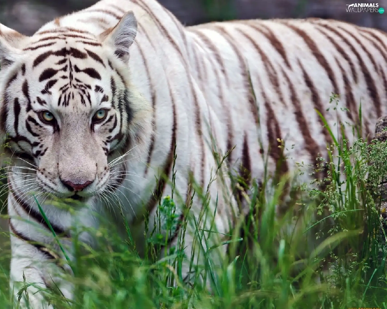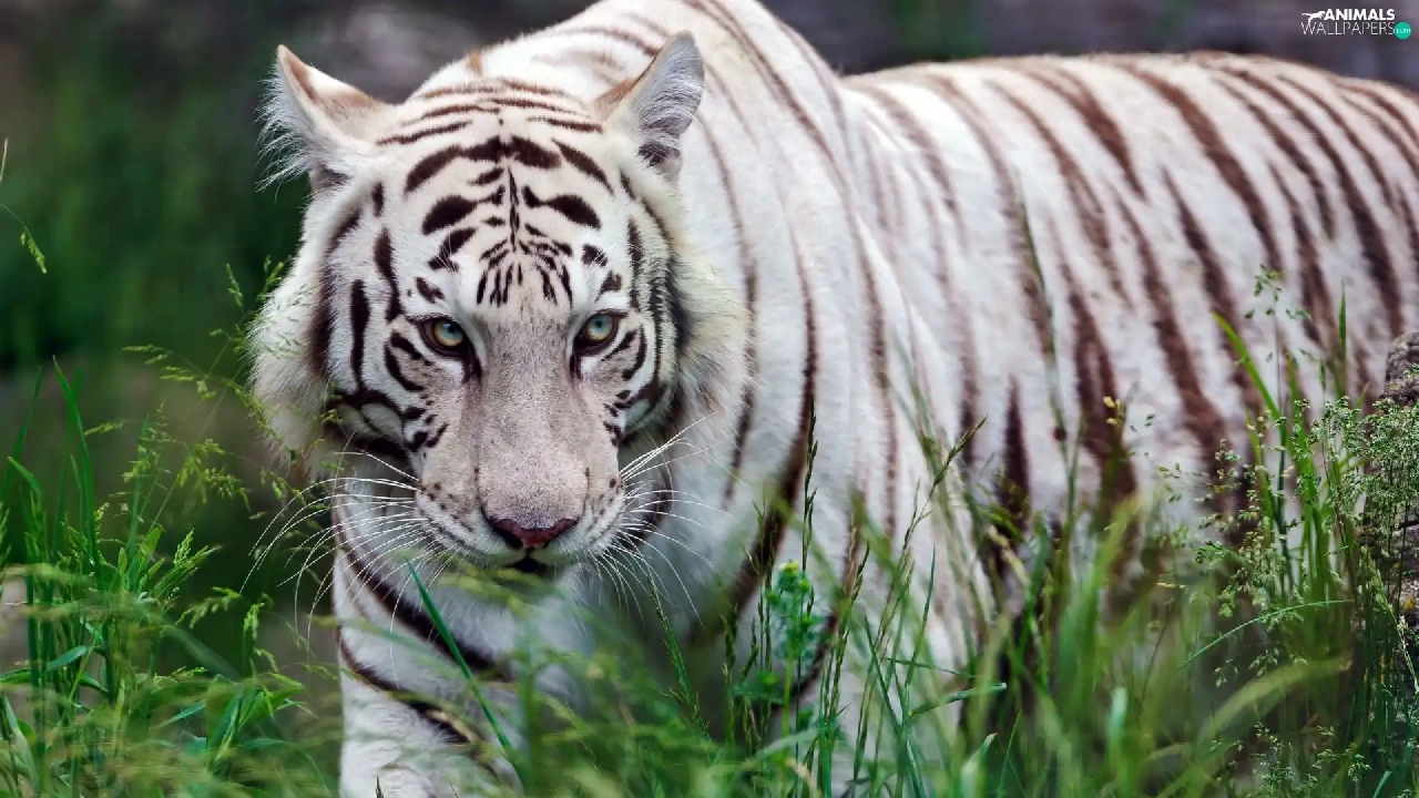 grass, White, tiger