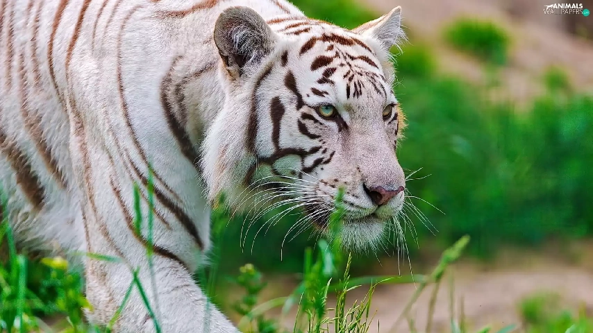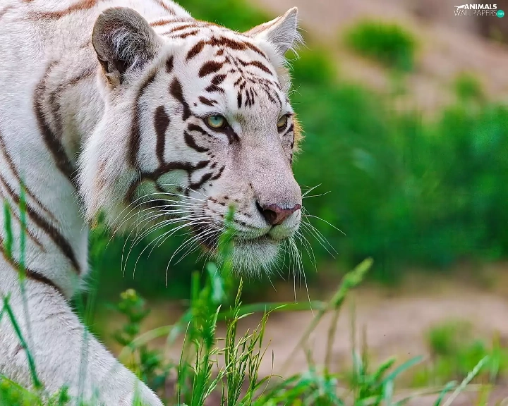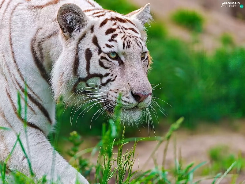 grass, White, tiger