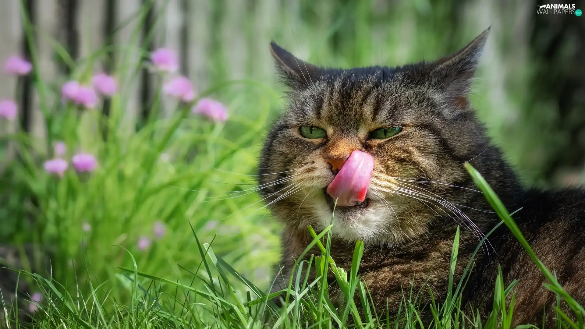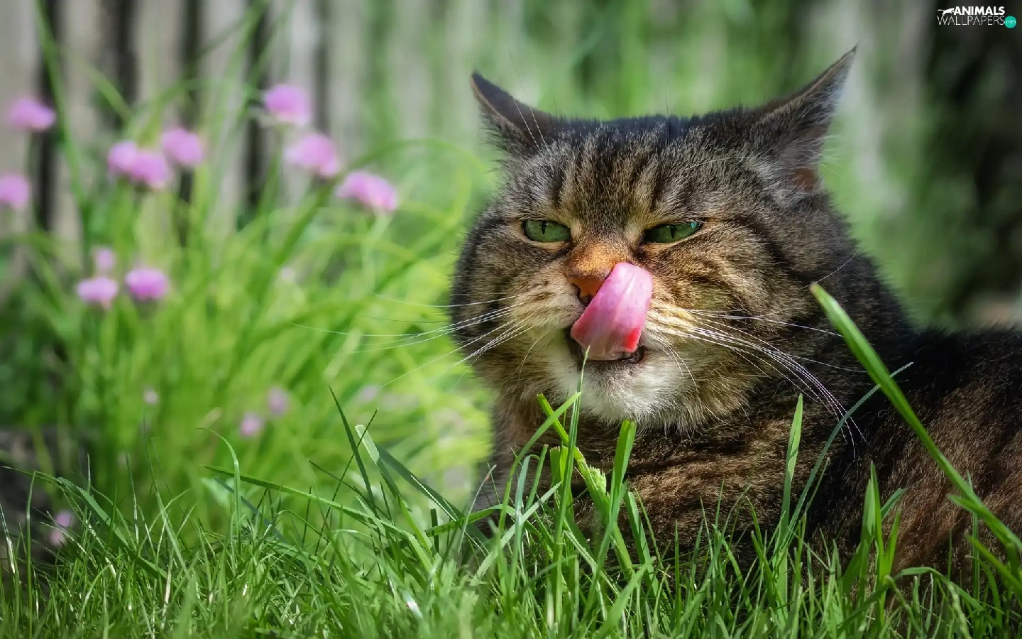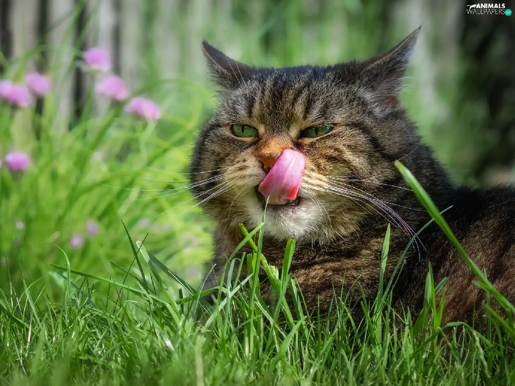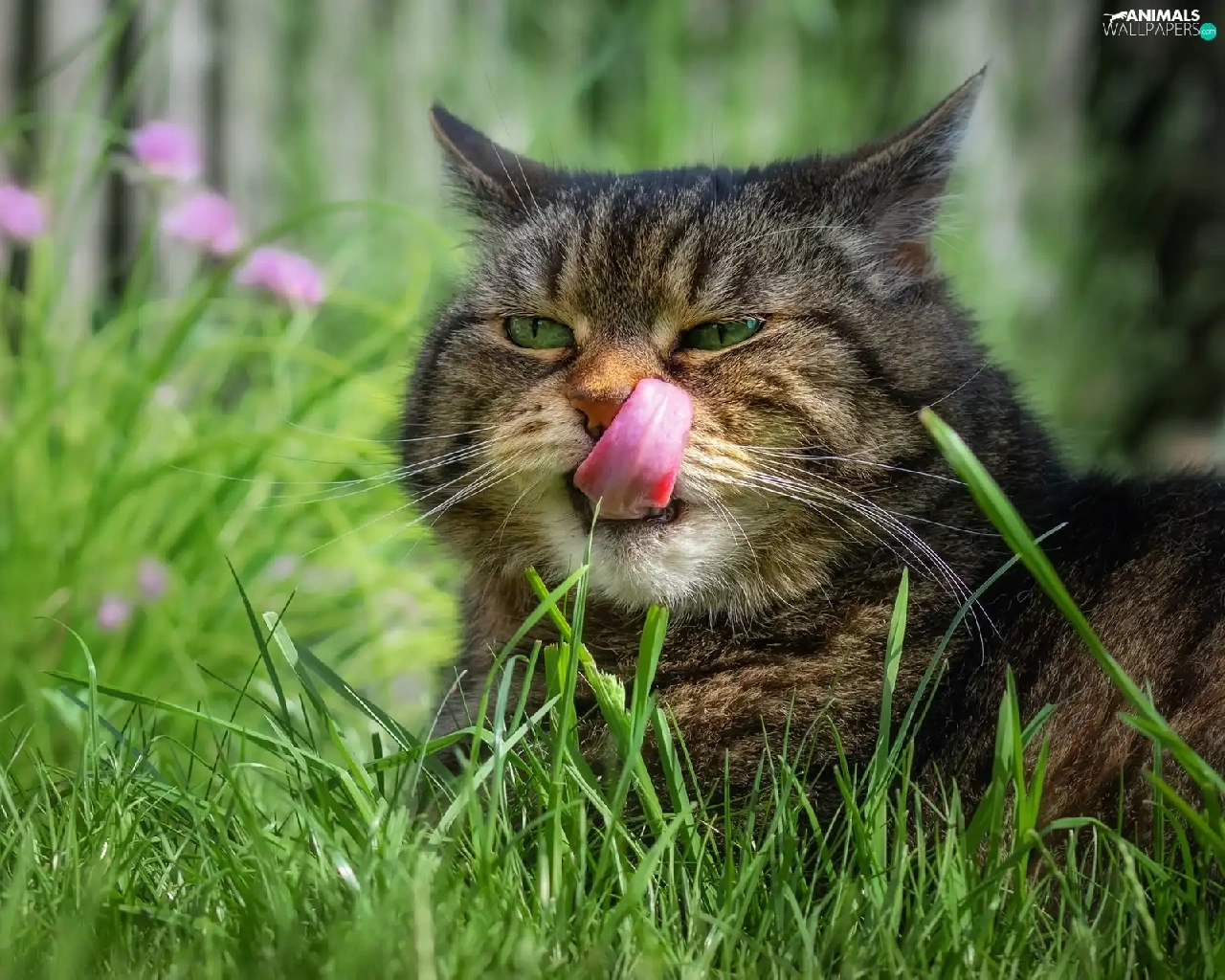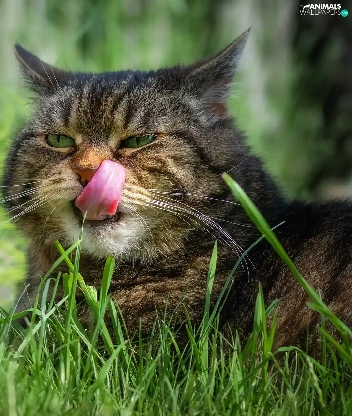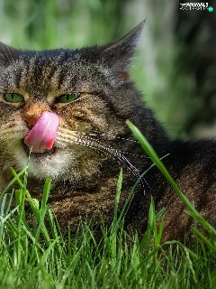 grass, cat, Tounge