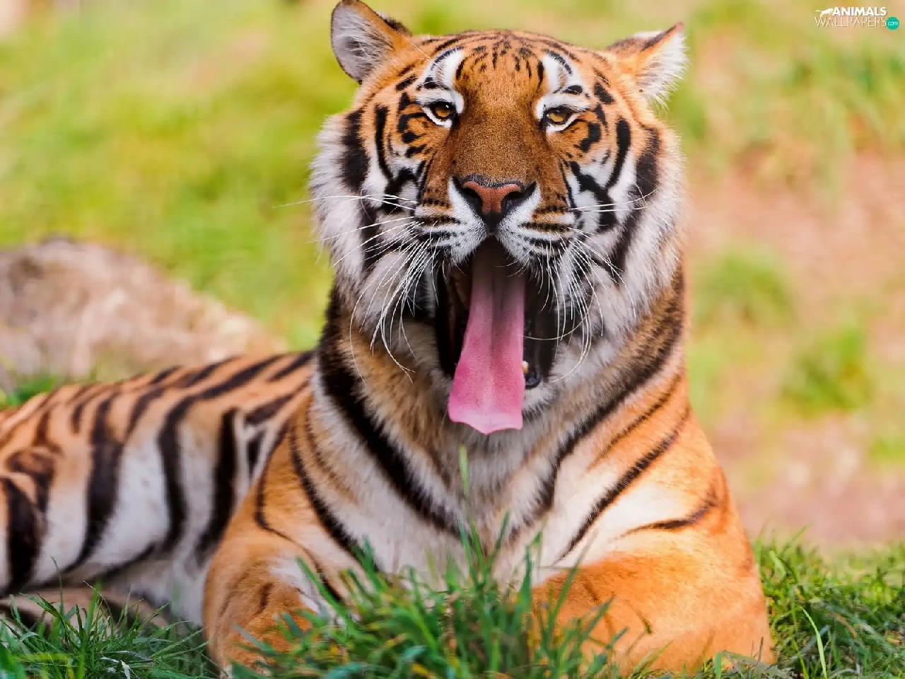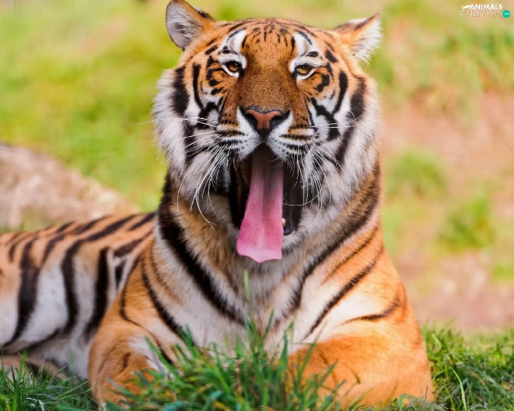 grass, tiger, Tounge