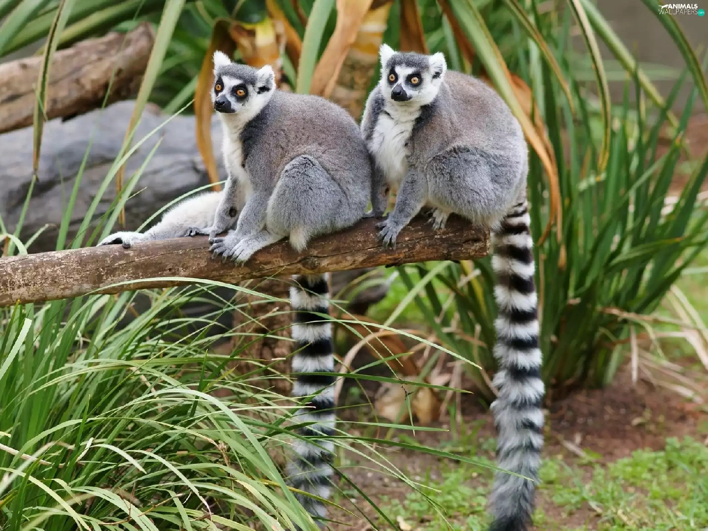 grass, lemurs, trees