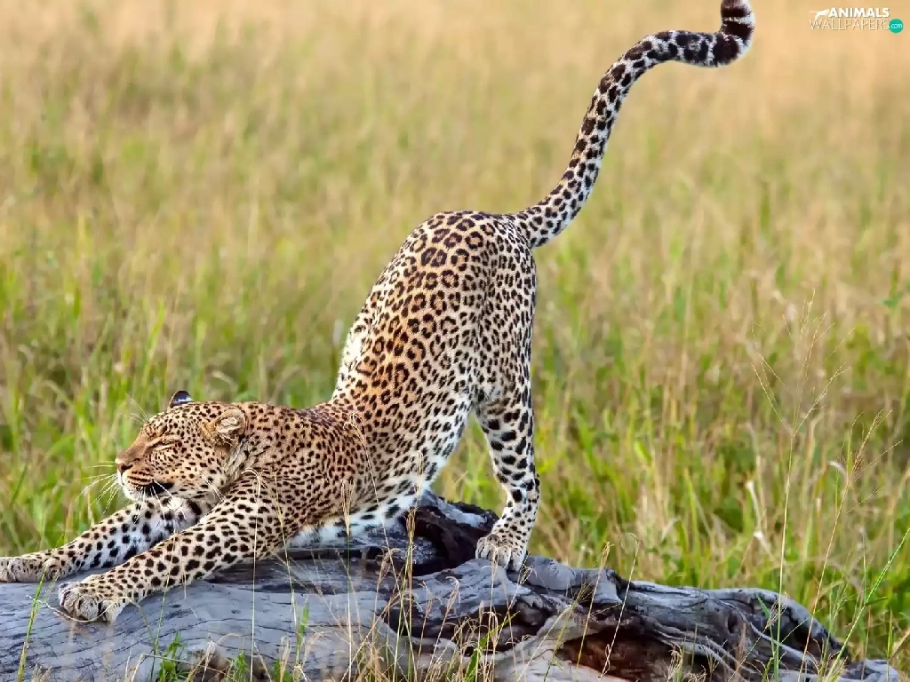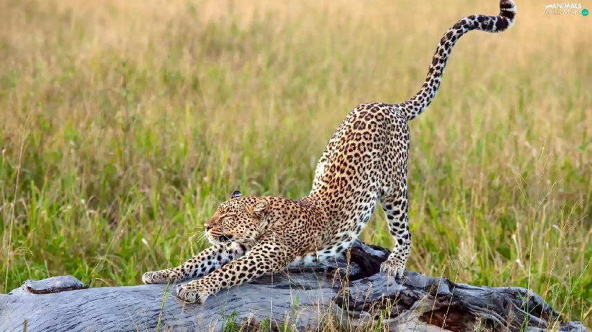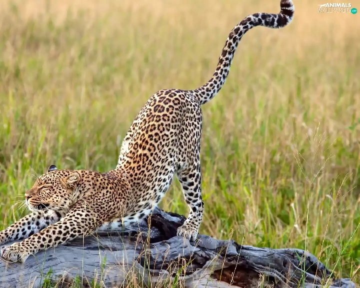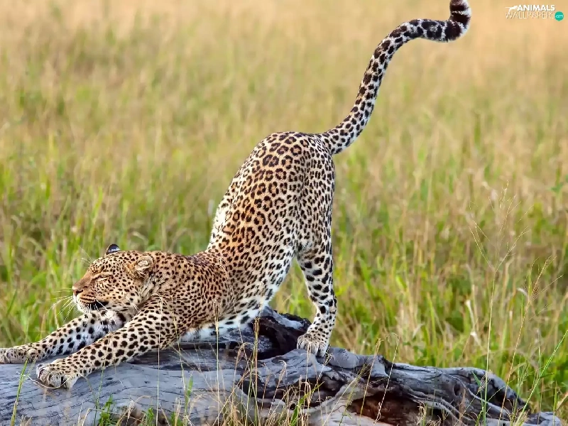 grass, Leopards, trees