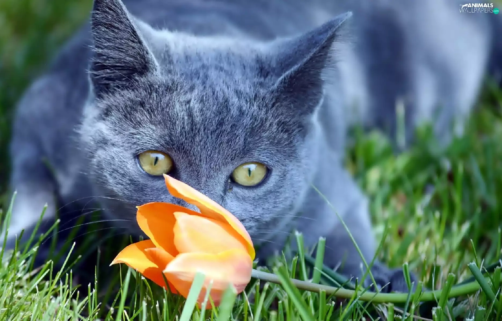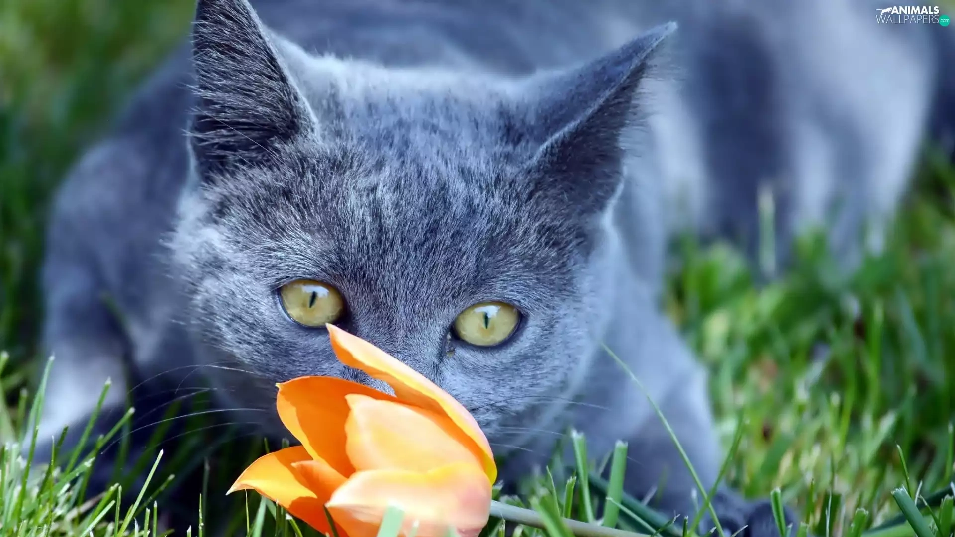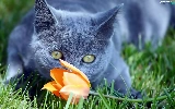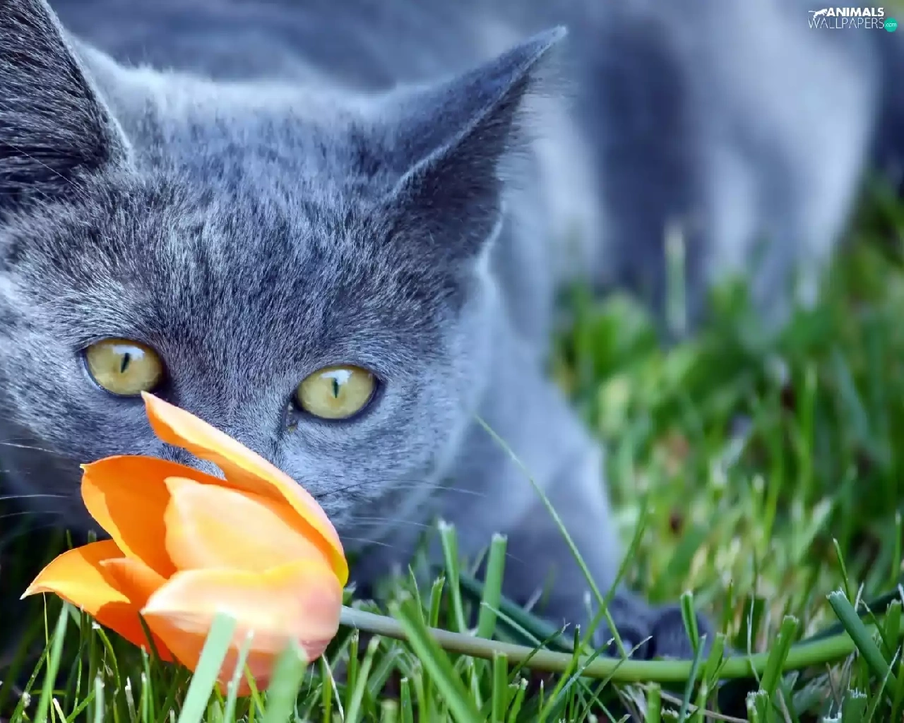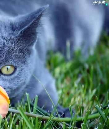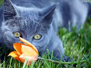 grass, cat, tulip