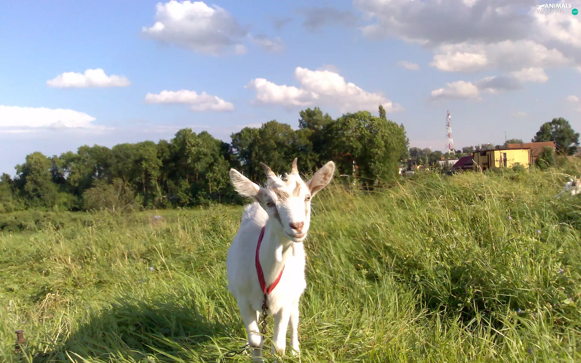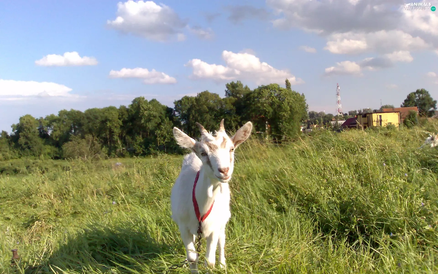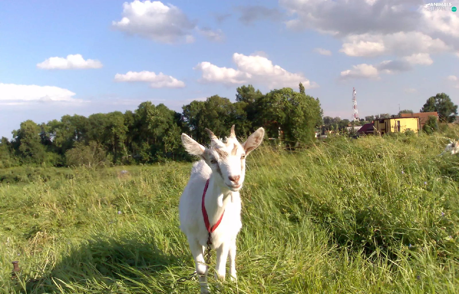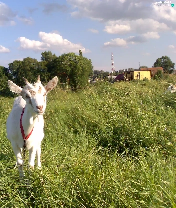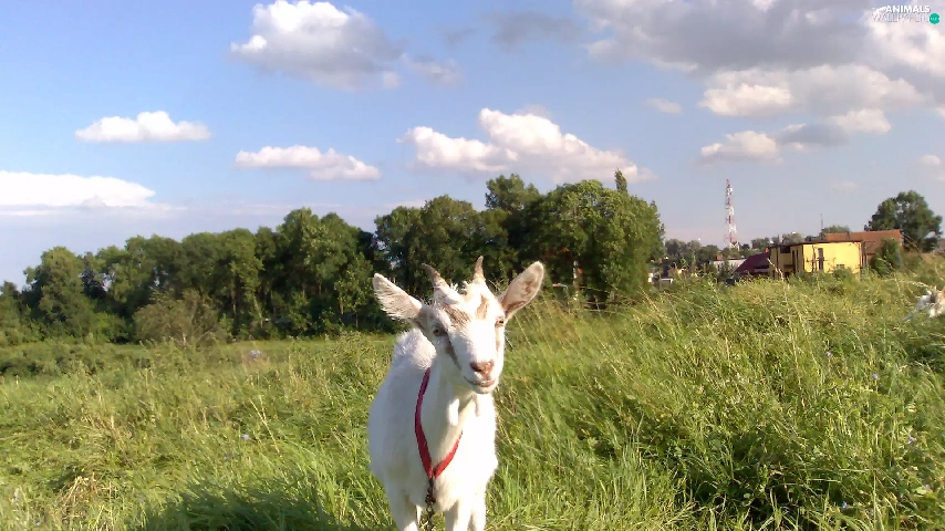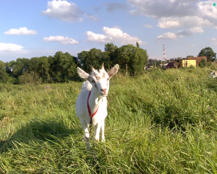 grass, goat, White