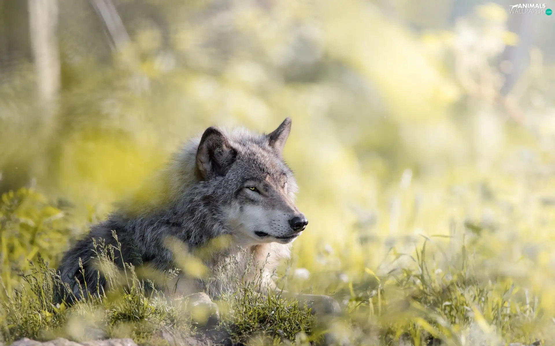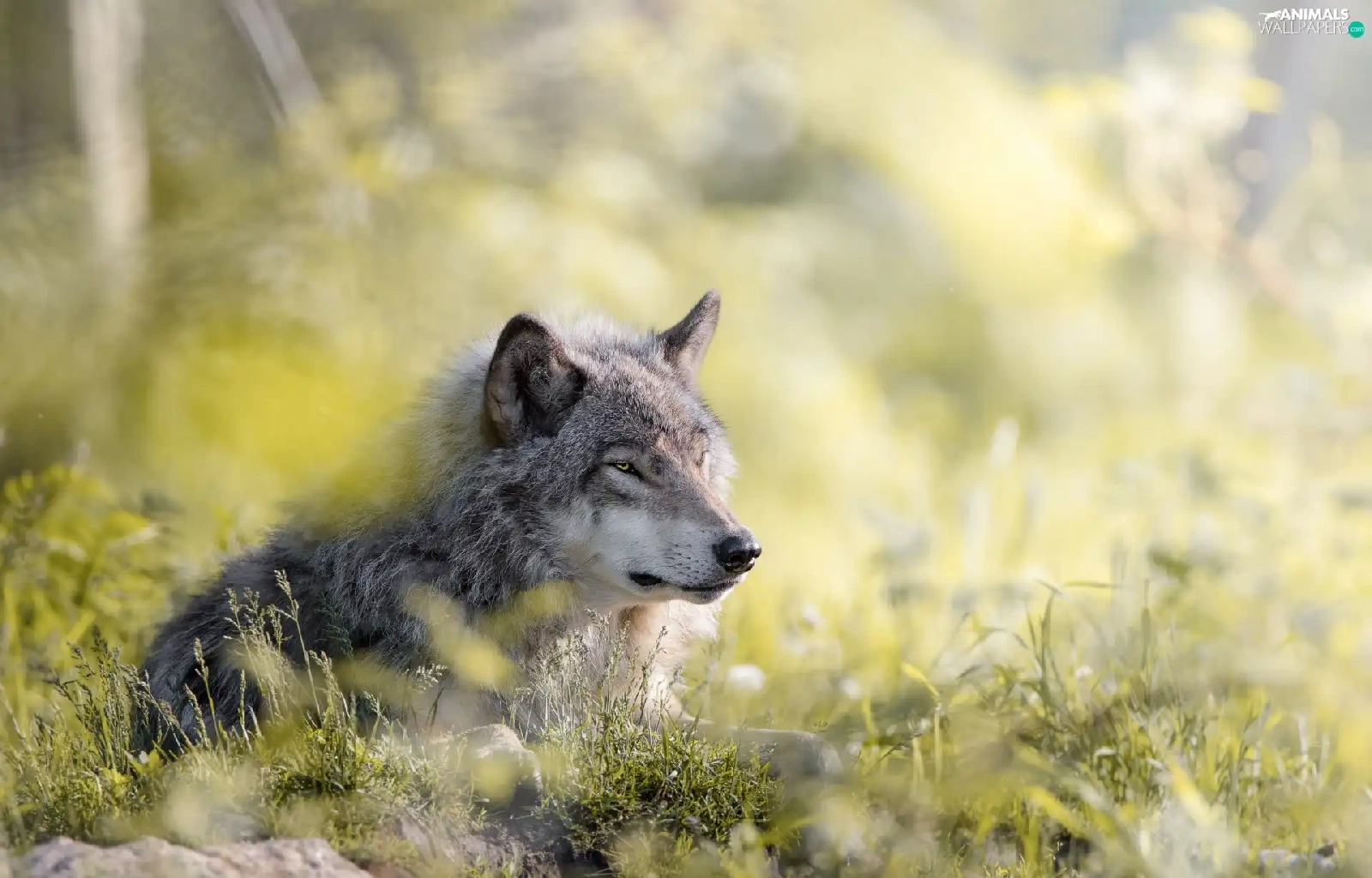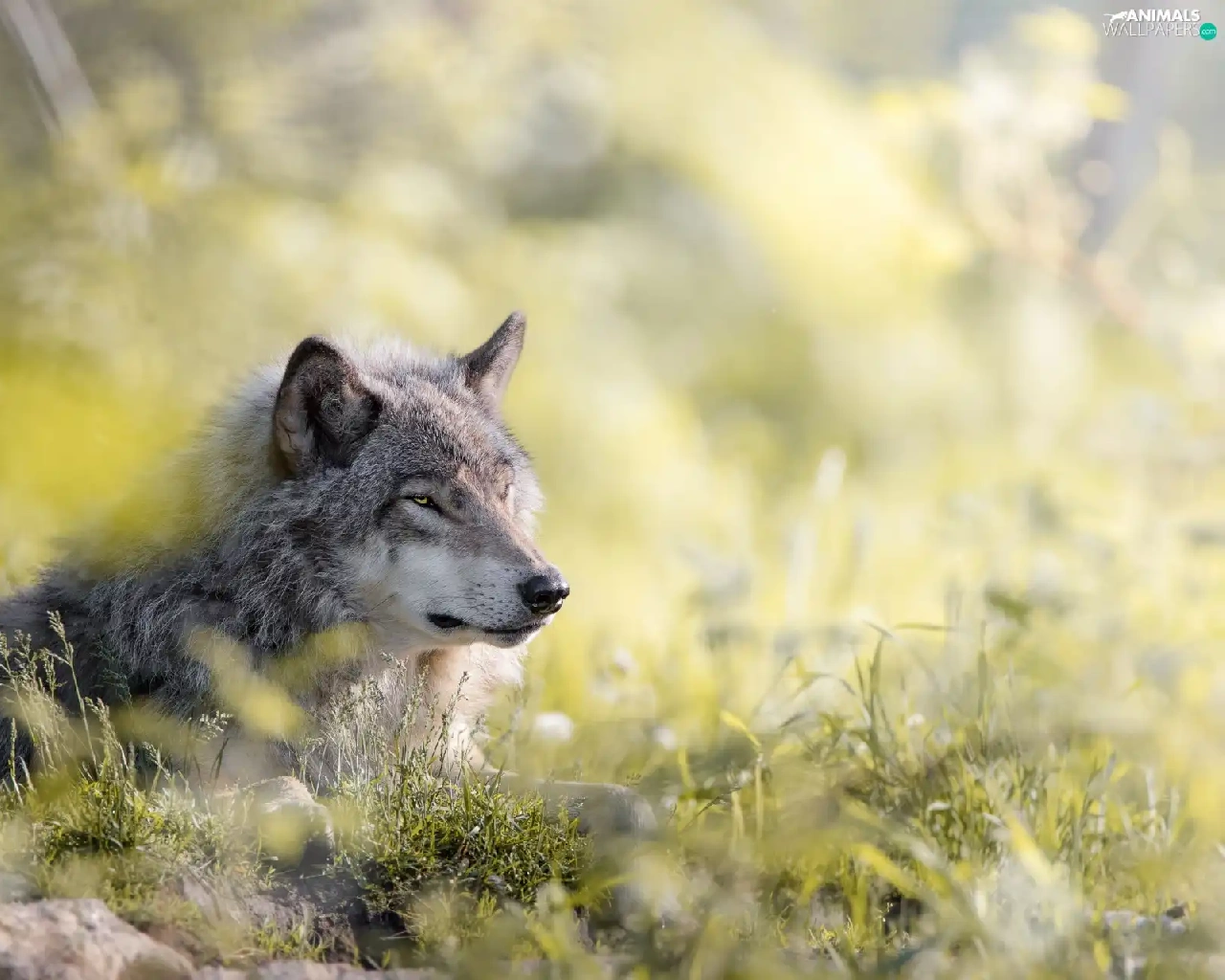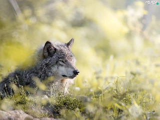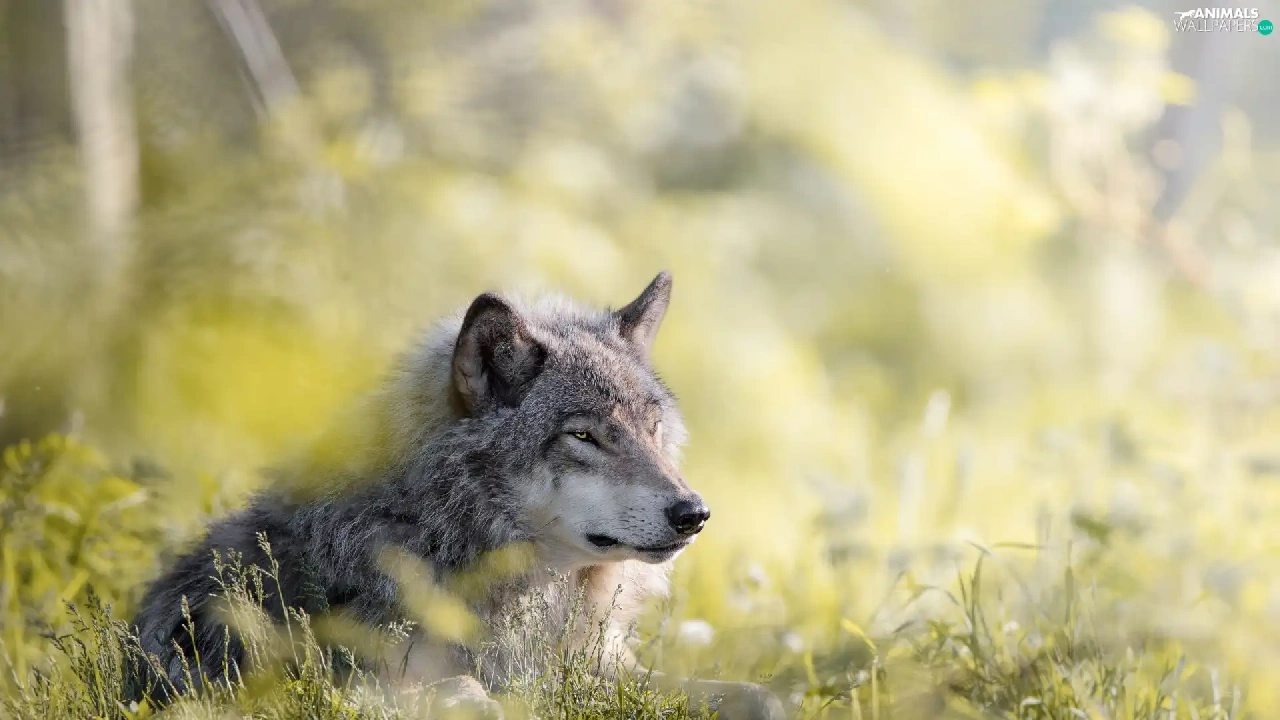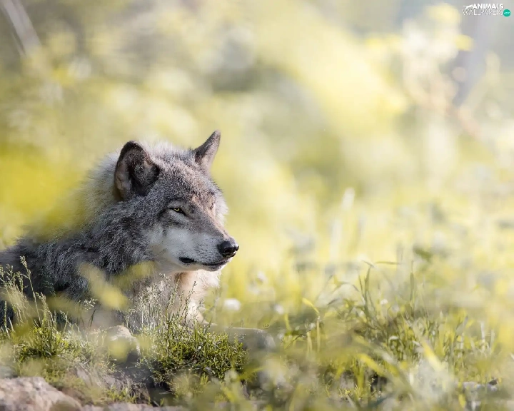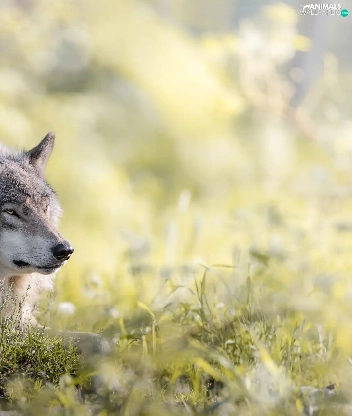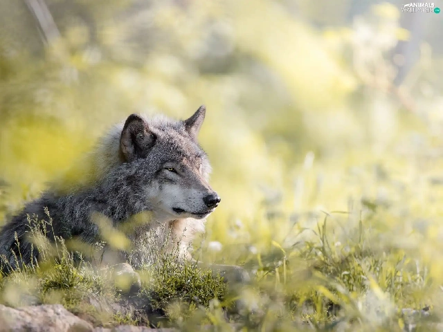 grass, lying, Wolf