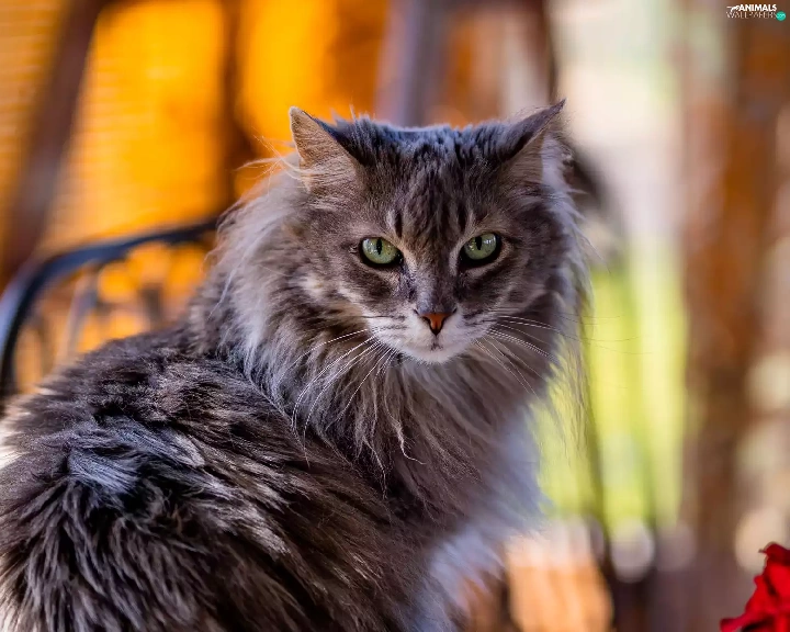 cat, fluffy, Longhaired, Gray