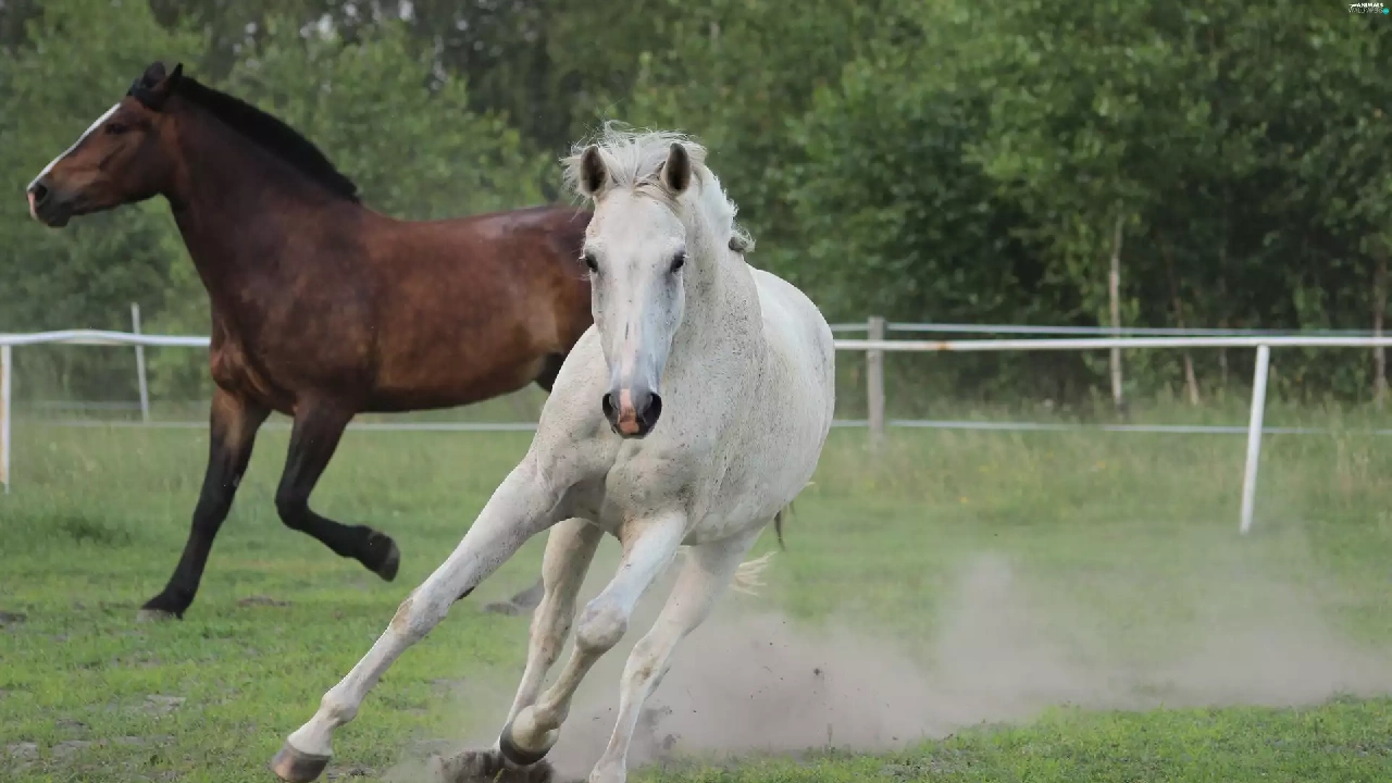 Mare, gallop, pasture, gray