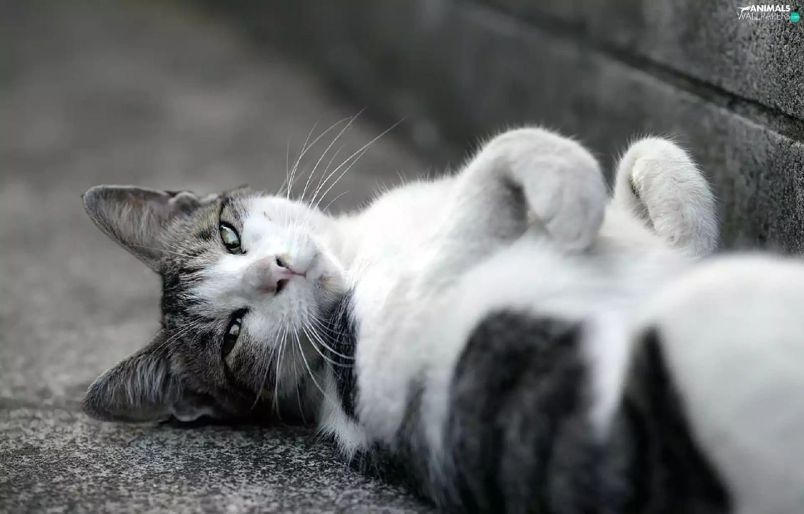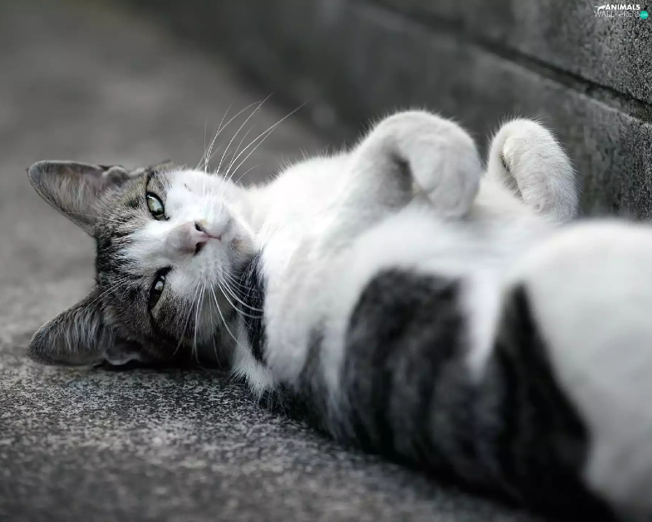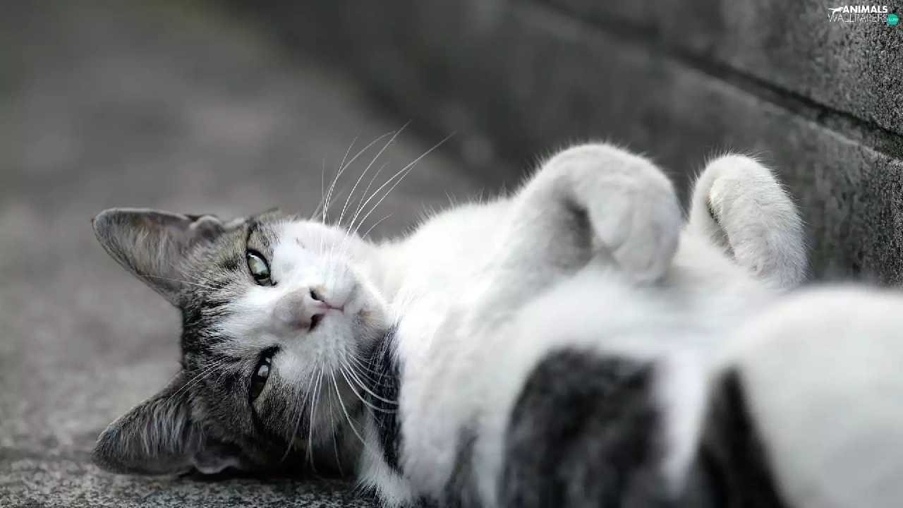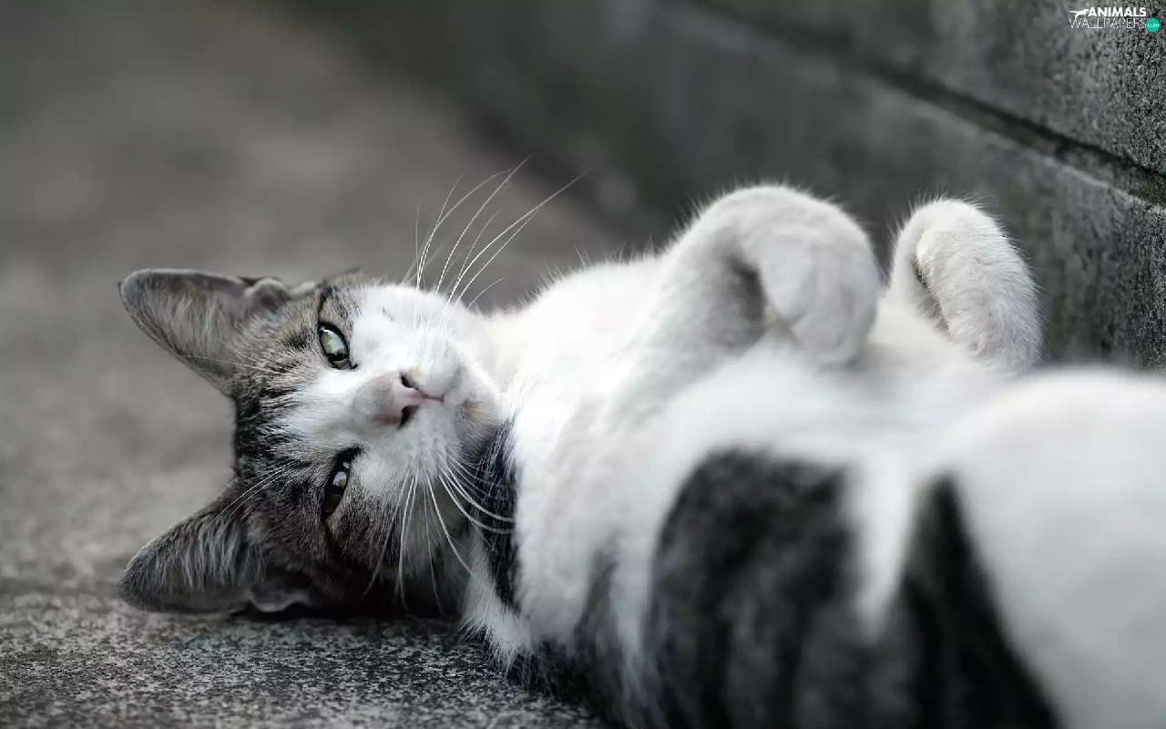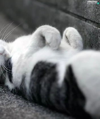 white, lazy, cat, Gray