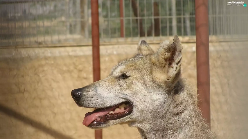 Wolf, Head, Cage, Gray