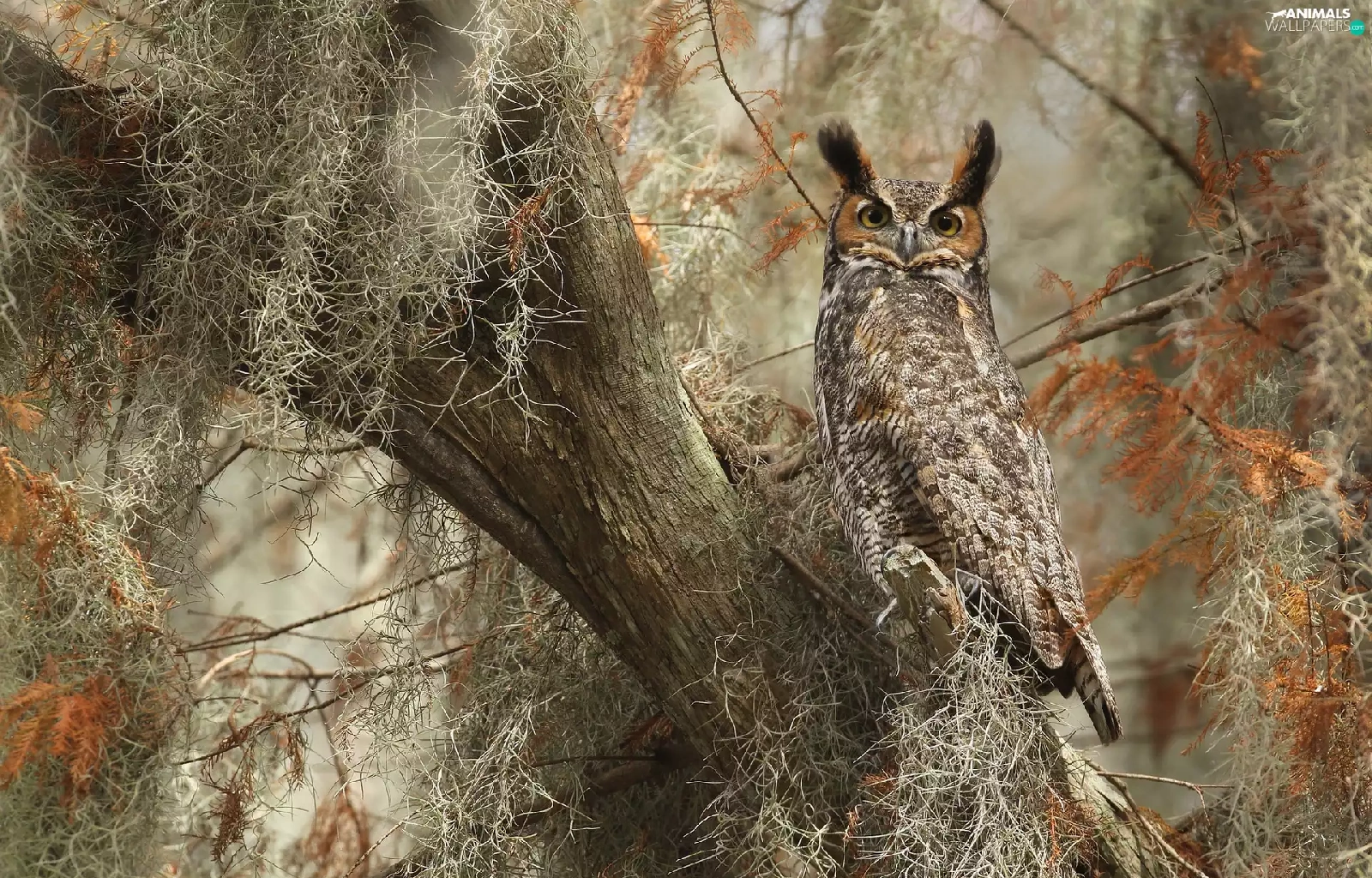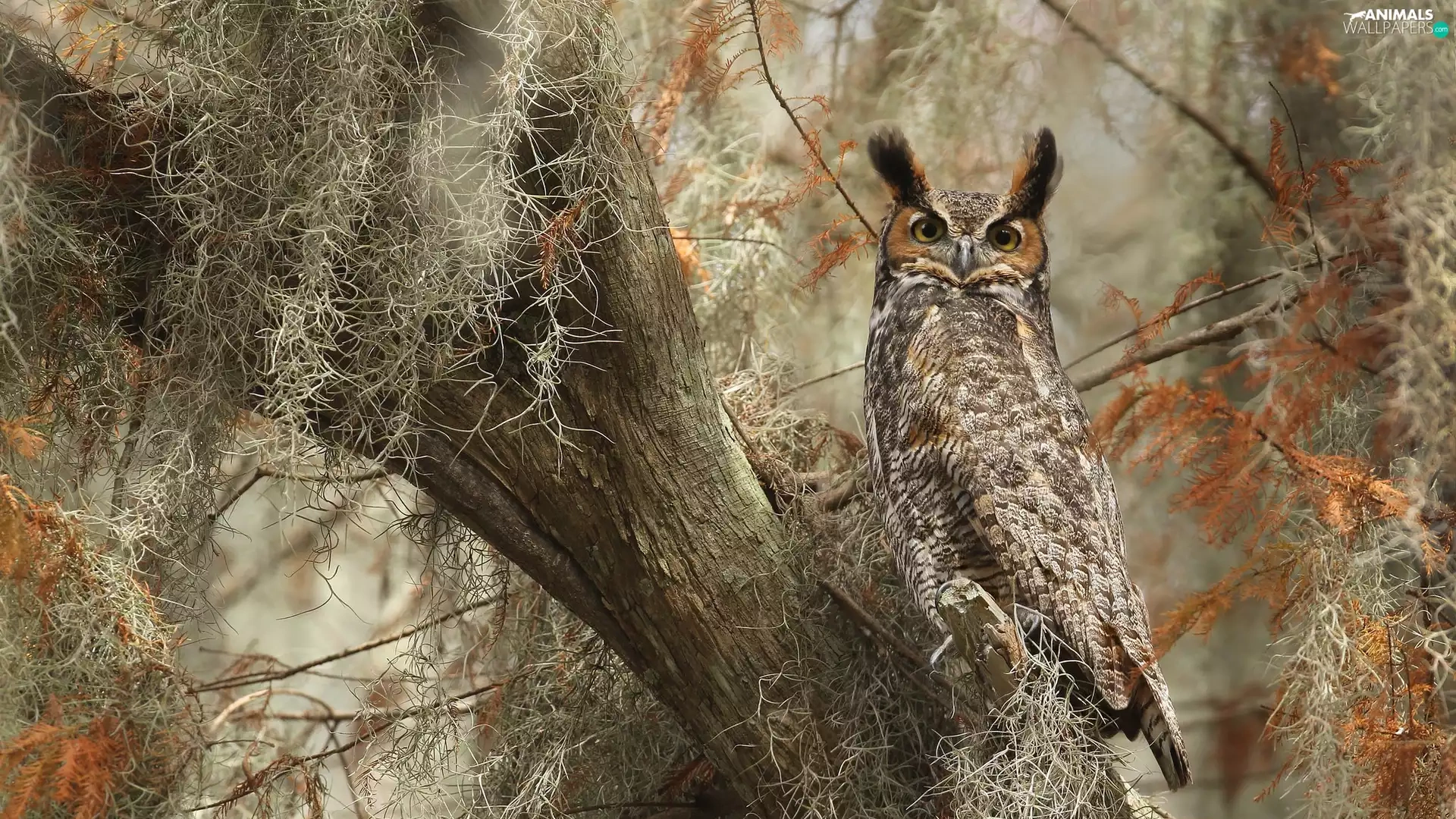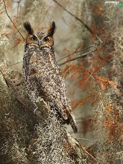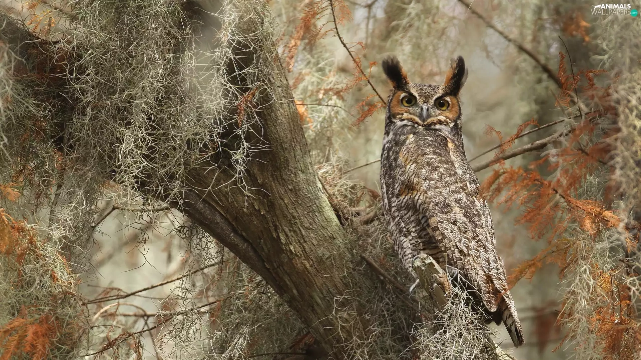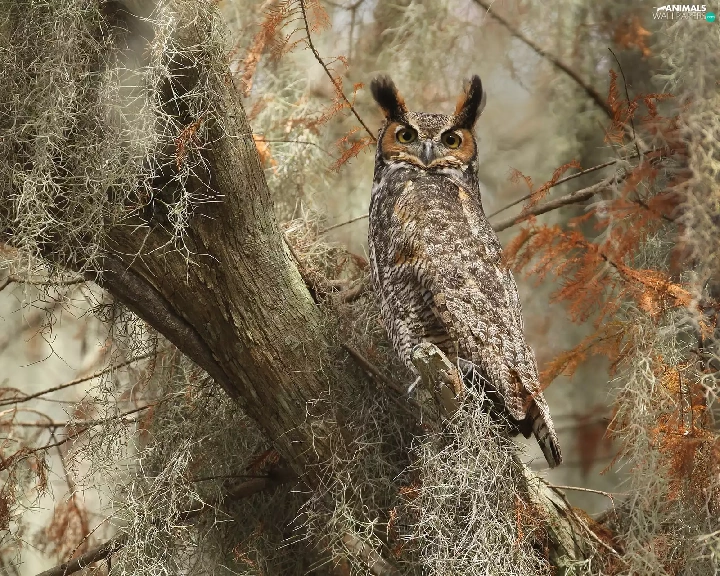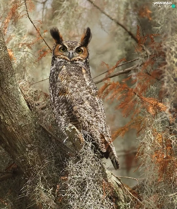owl, trees, Climbers, Great Horned Owl