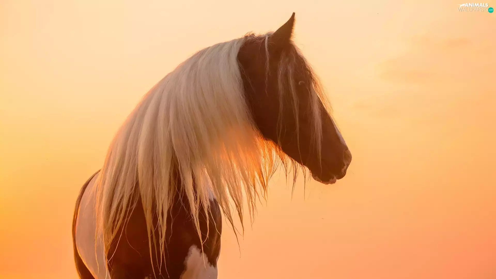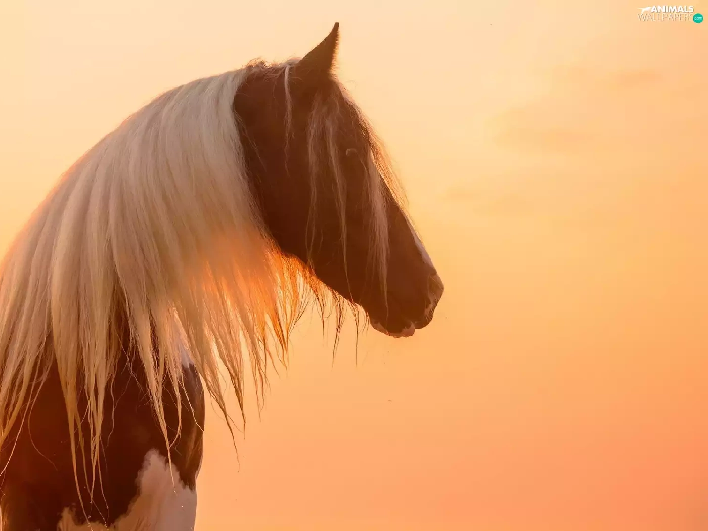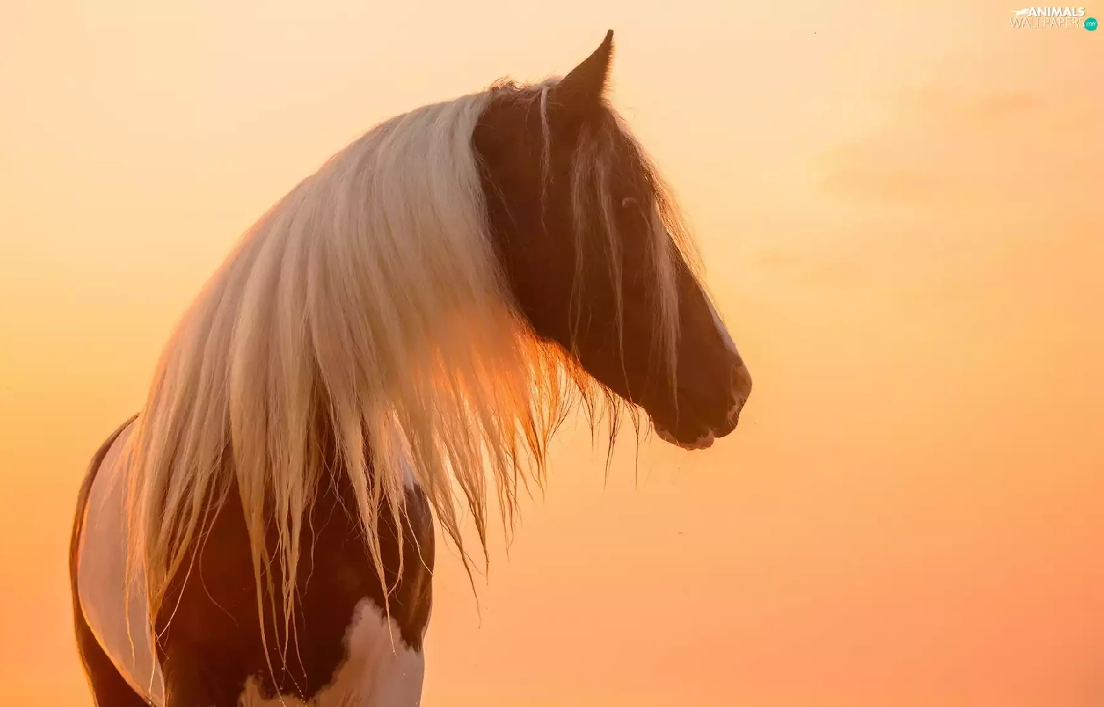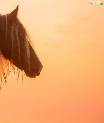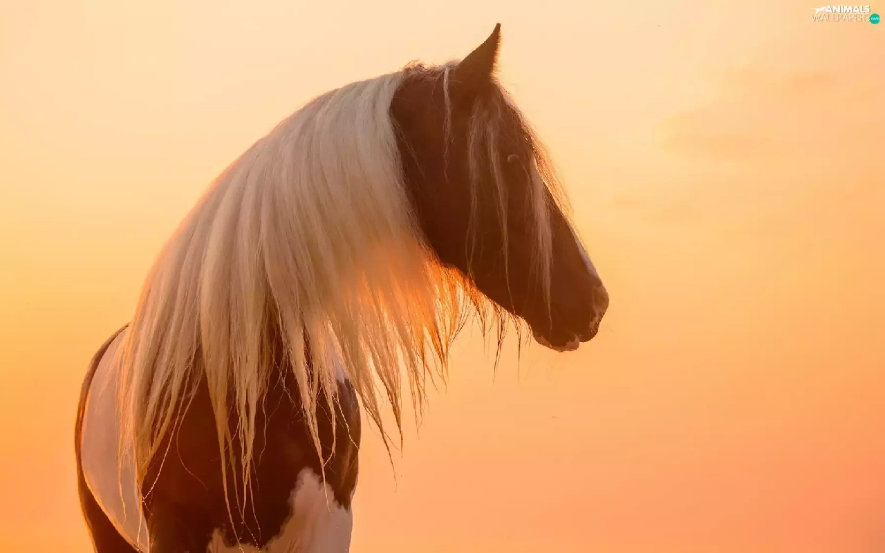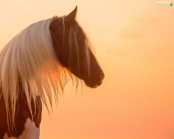 White, pinto, profile, Great Sunsets, mane, Horse