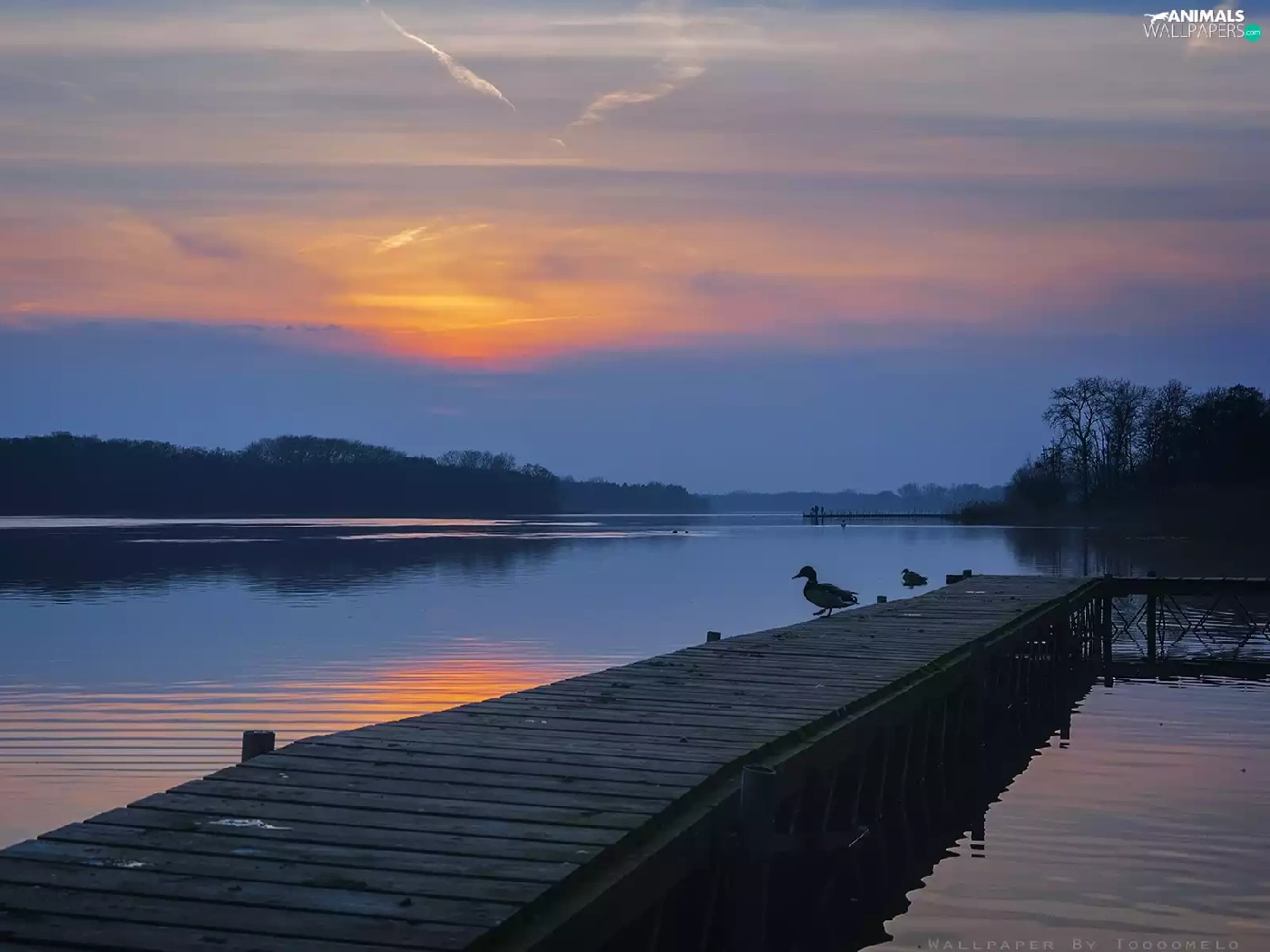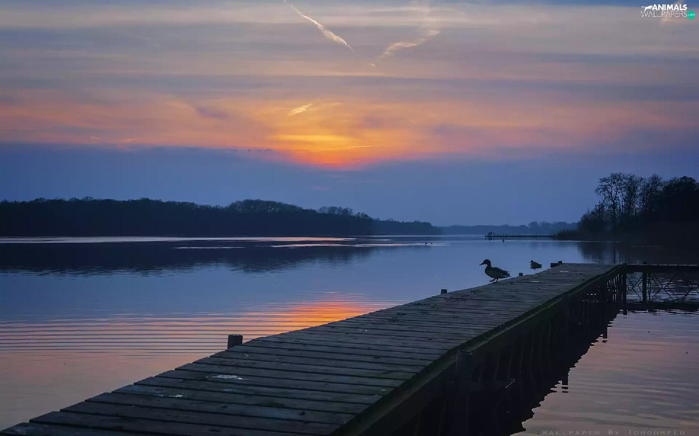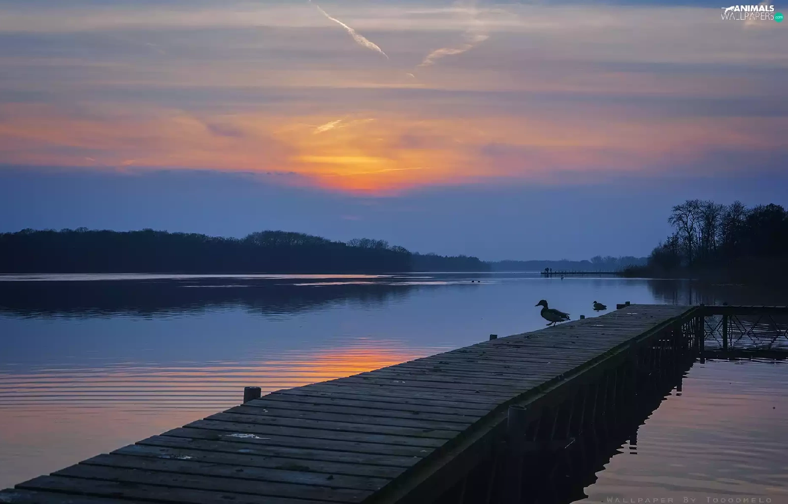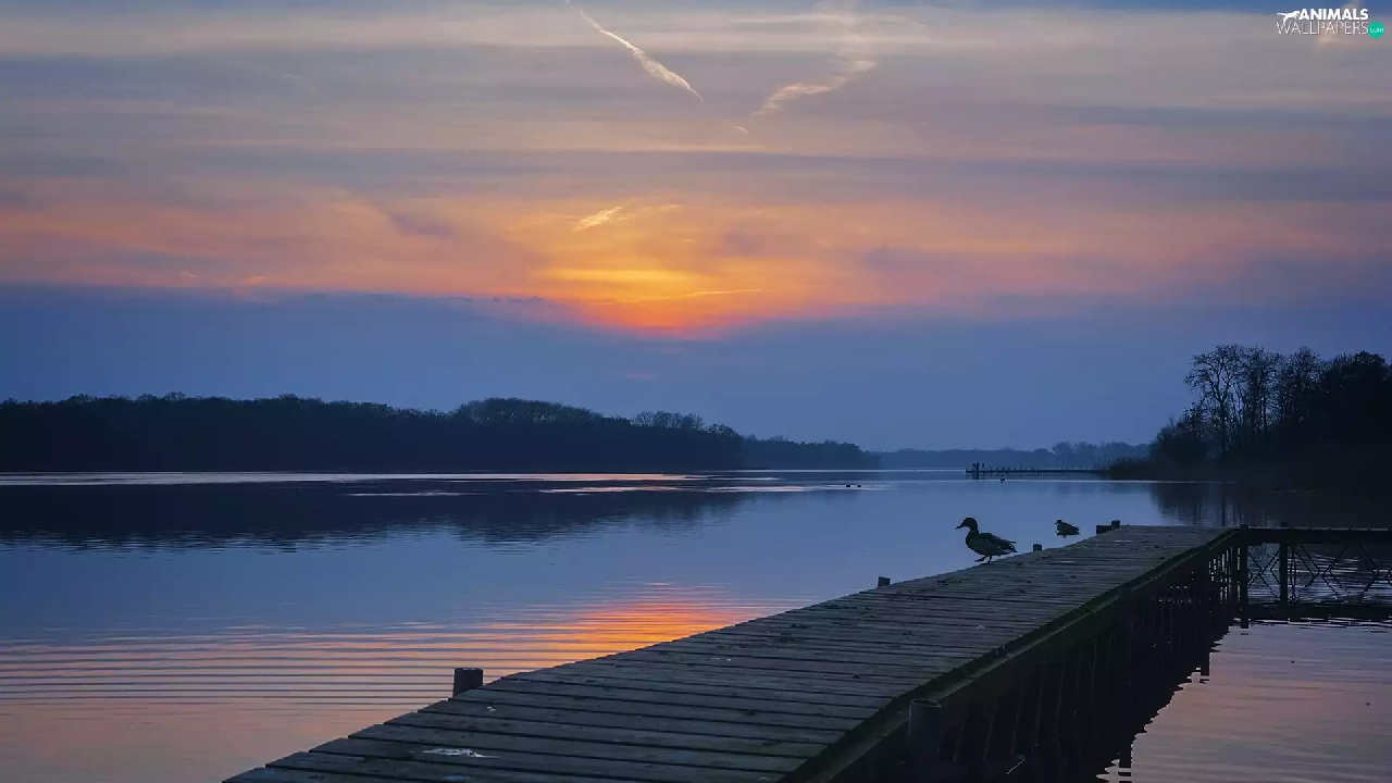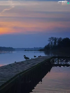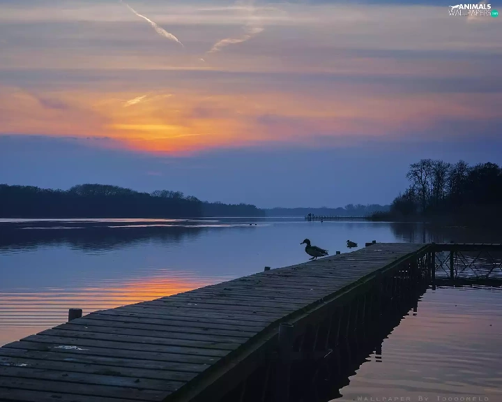 Platform, ducks, Wielkopolska, Great Sunsets, Lake Lusowskie