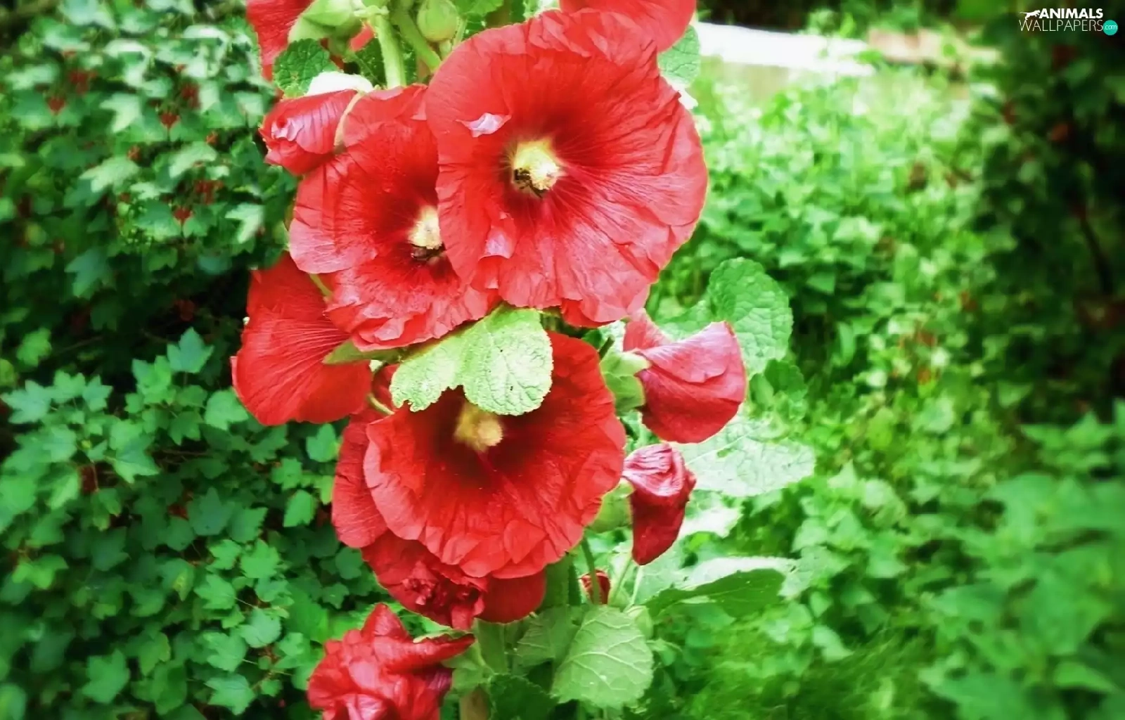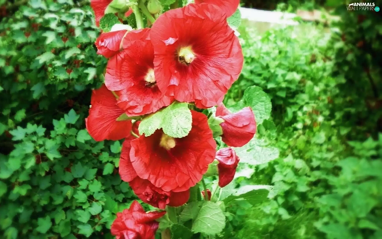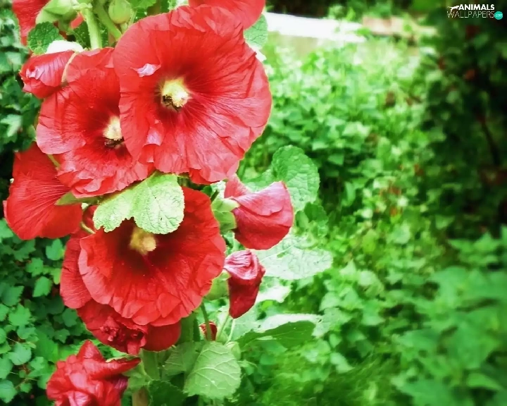 green, mallow, Bees