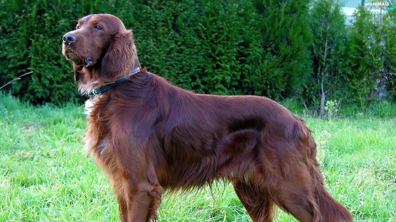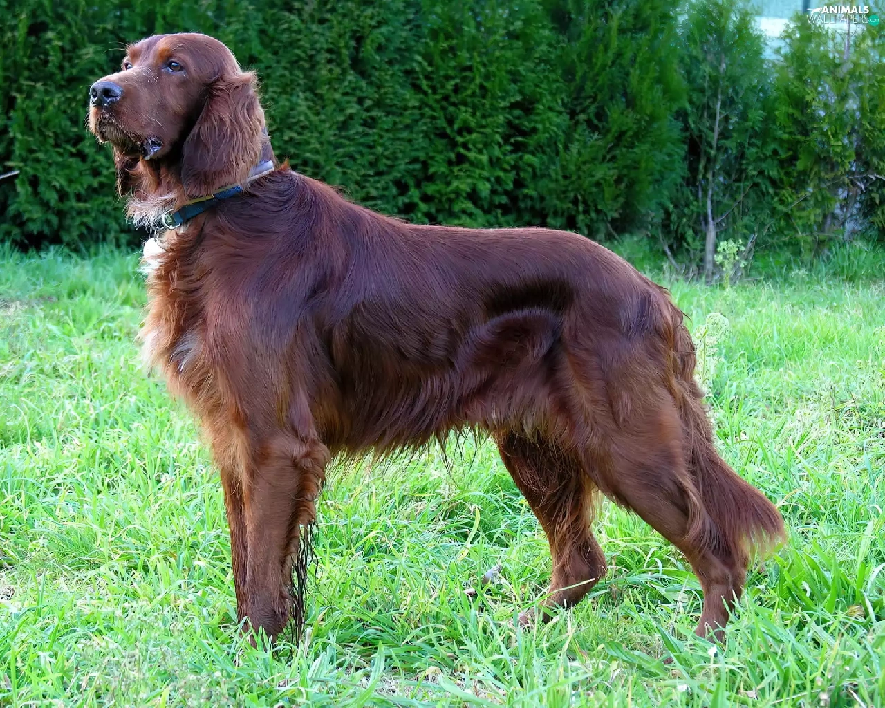 Brown, Green, grass, Irish Setter