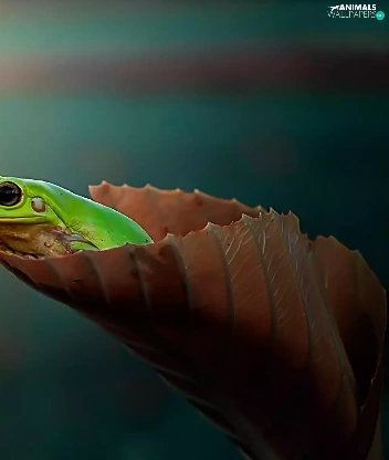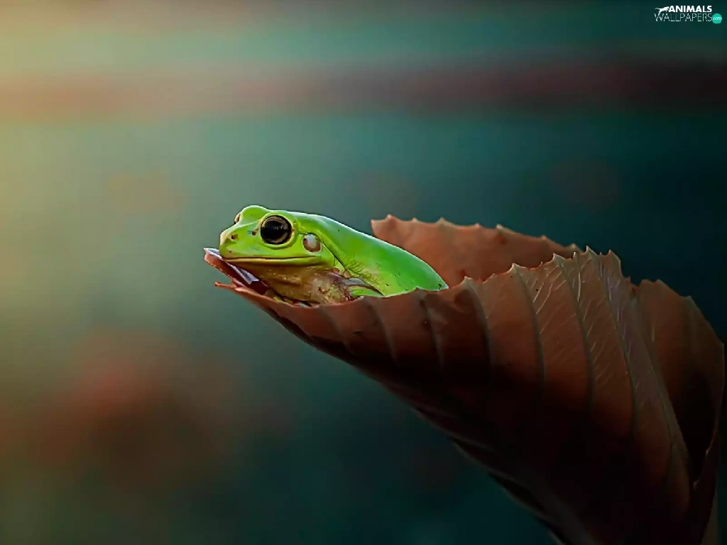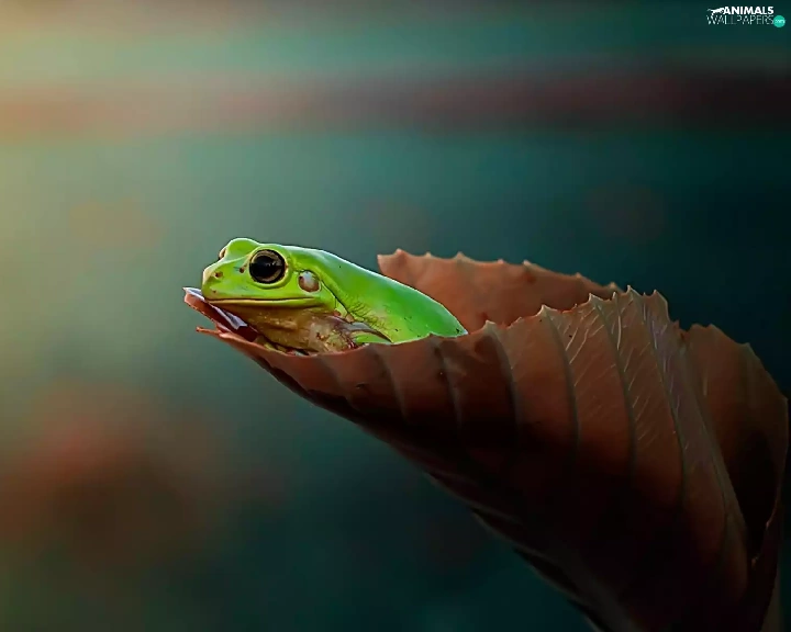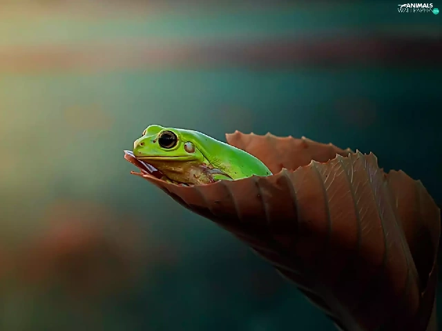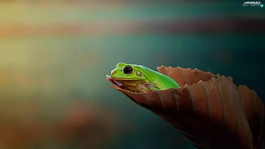 Green Frog, leaf