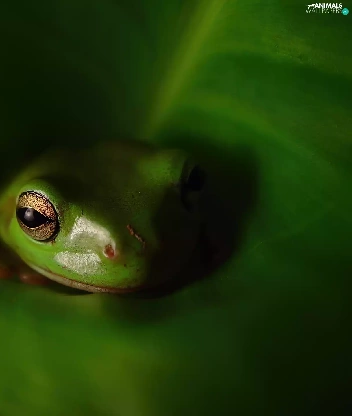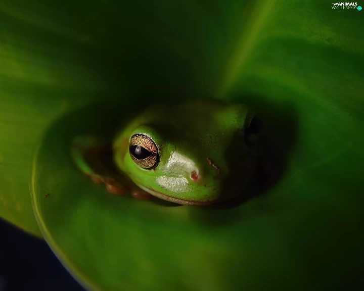 leaf, strange frog, Green