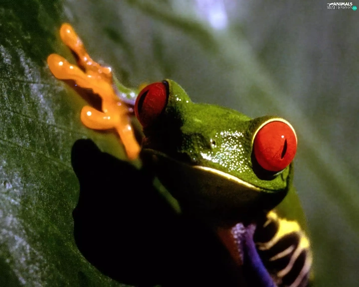 leaf, strange frog, Green