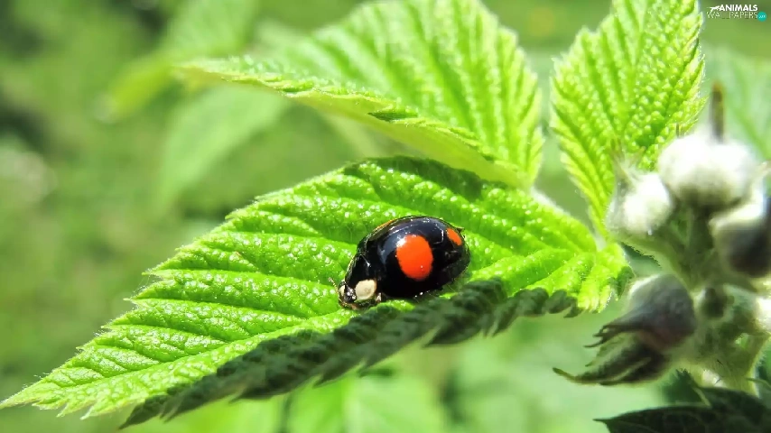 green, ladybird, leaf
