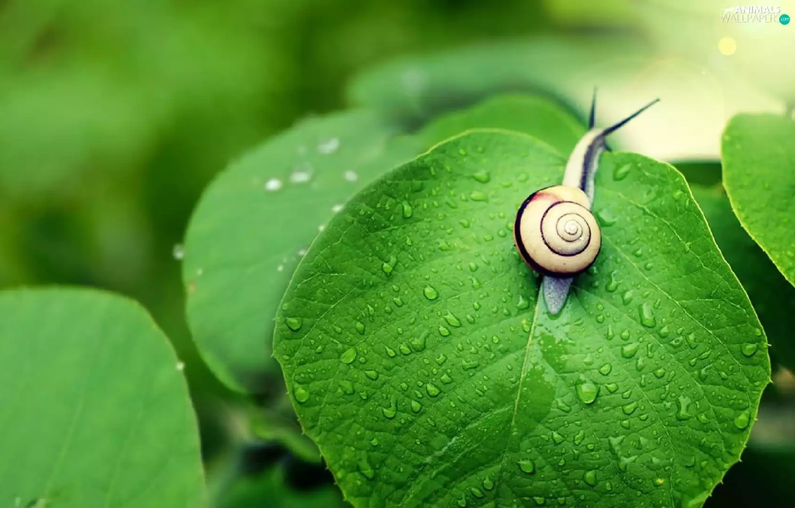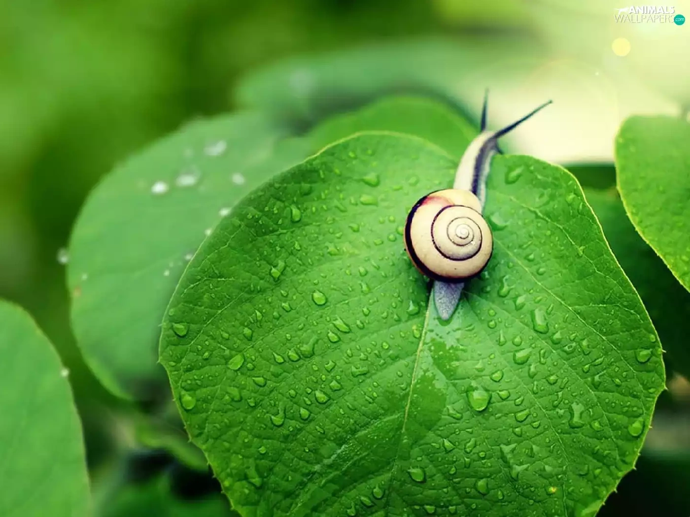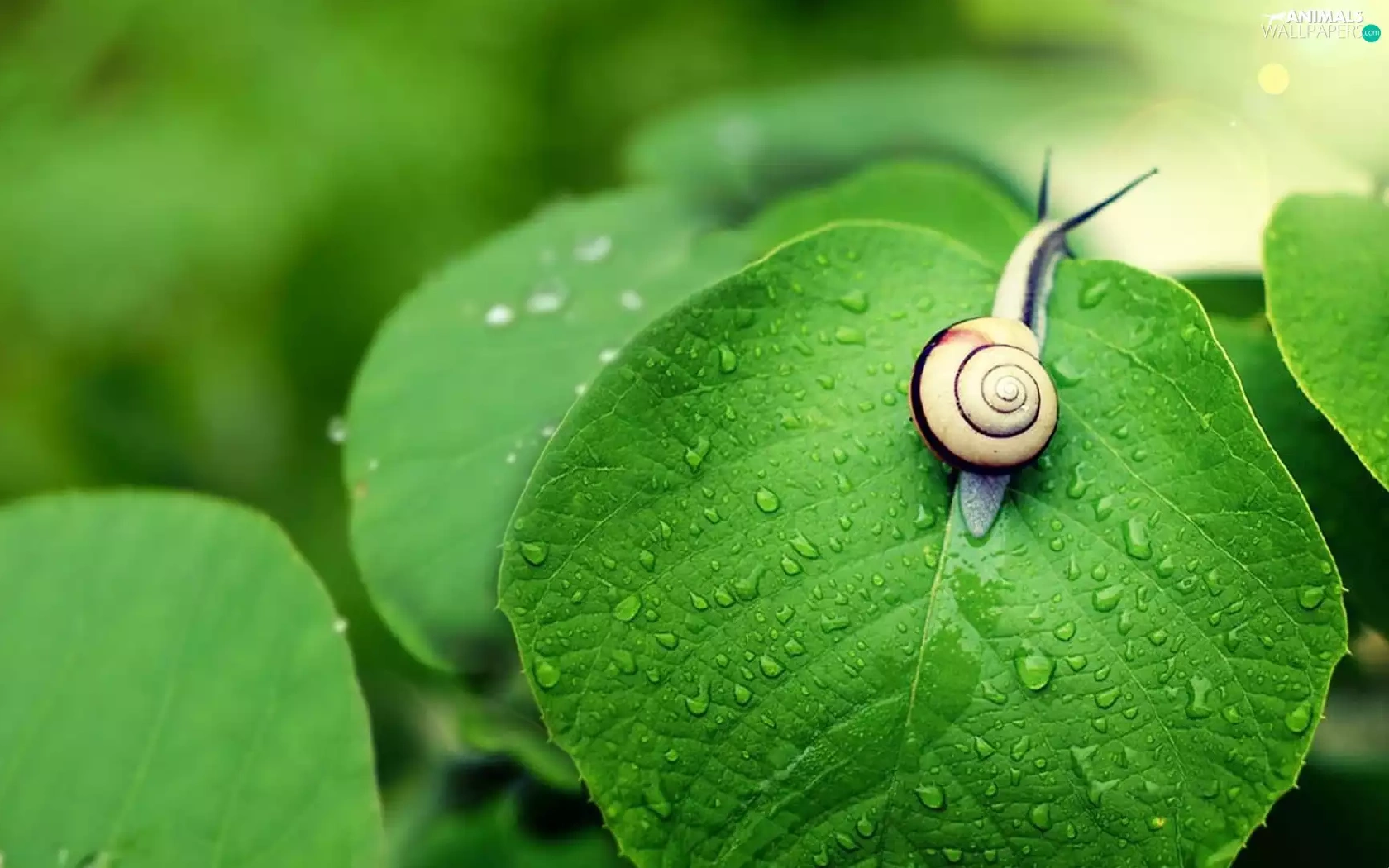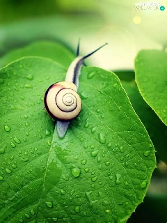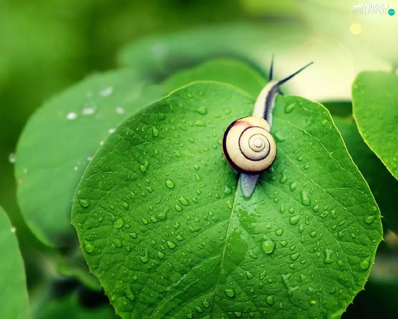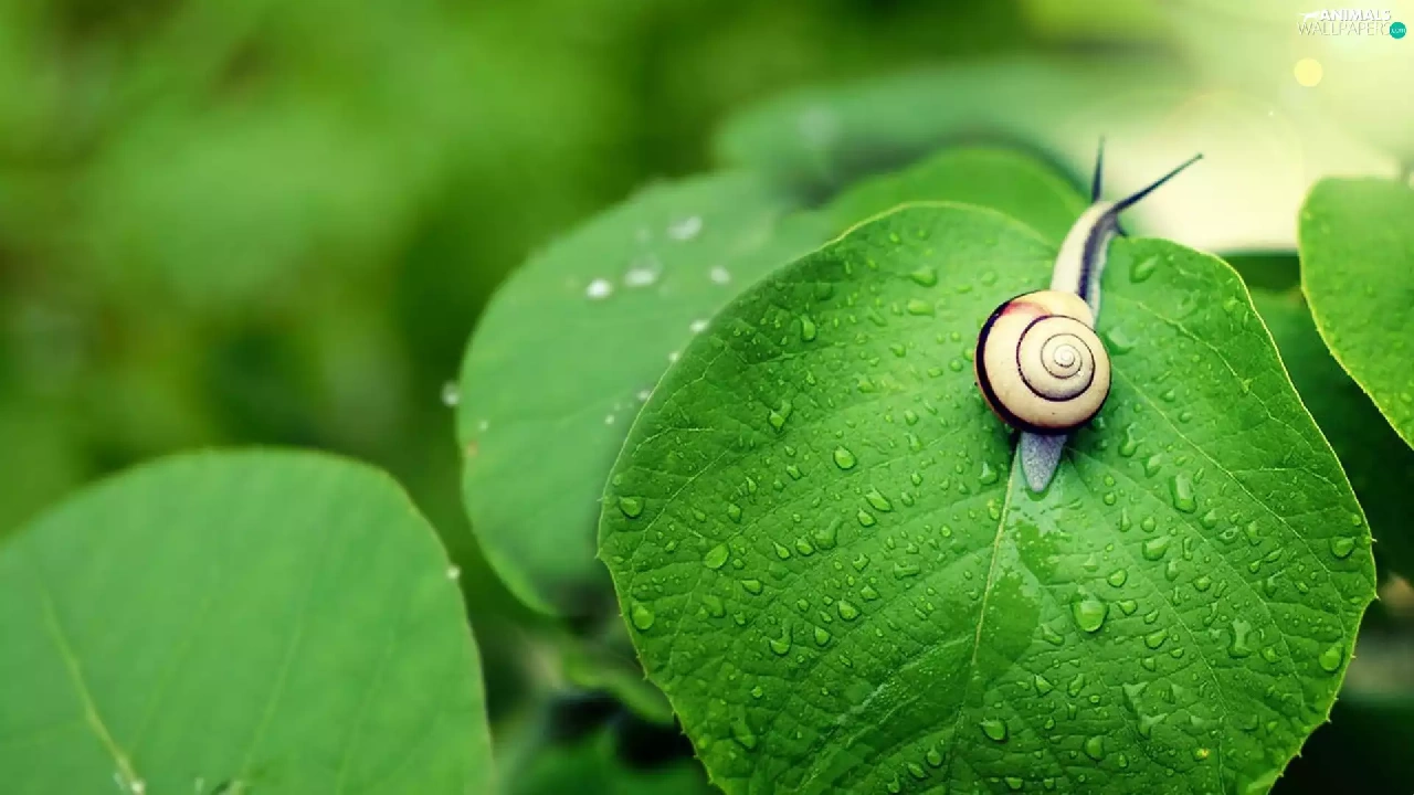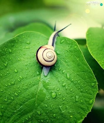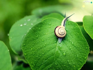 green, snail, leaf