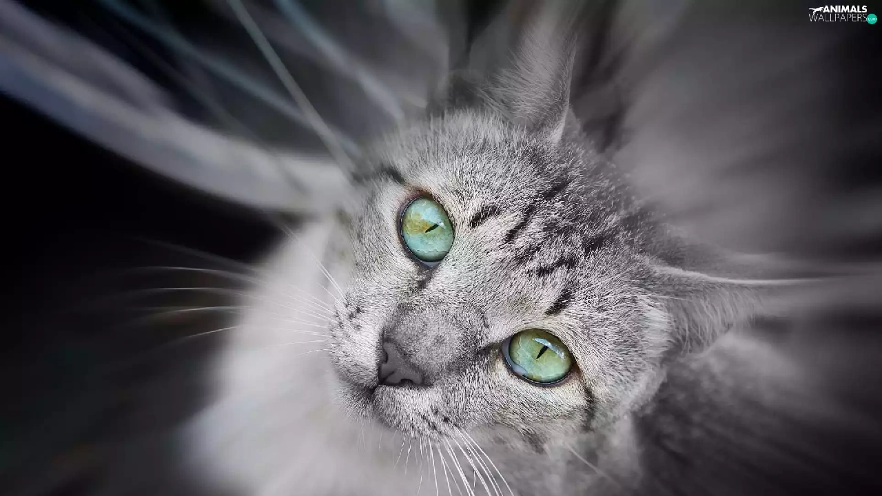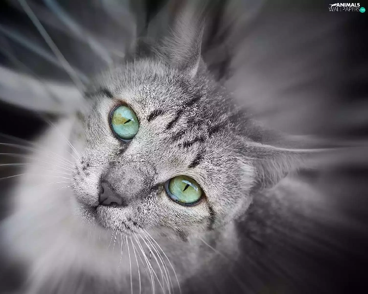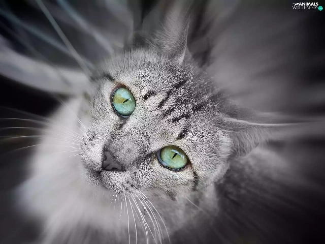 Gray, green ones, Eyes, cat