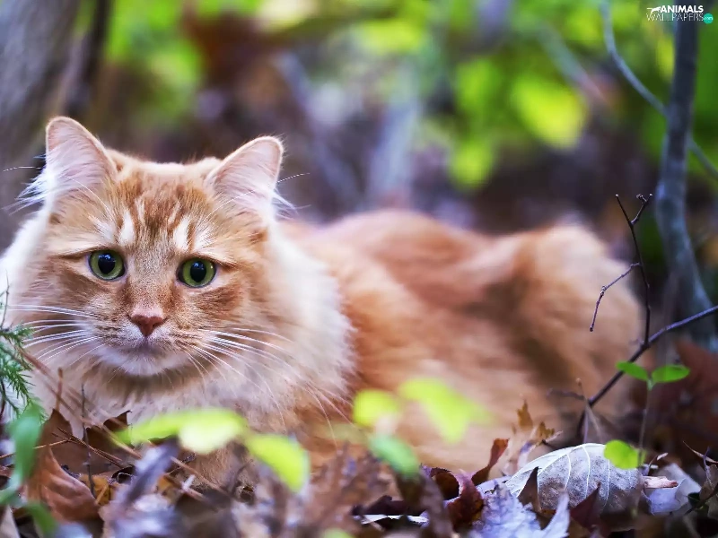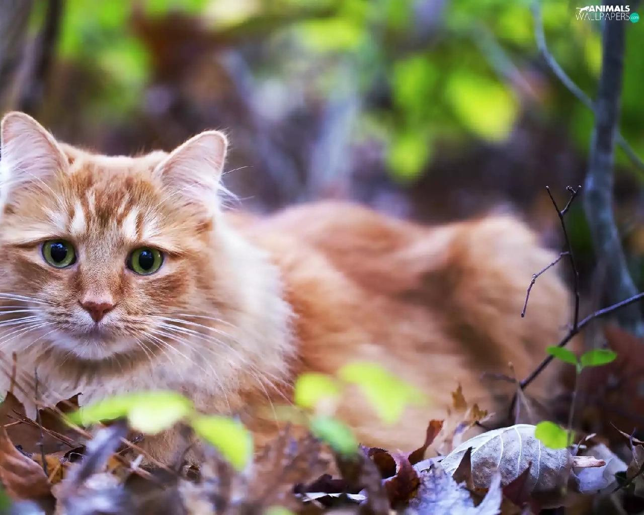 kitten, green ones, Leaf, Eyes
