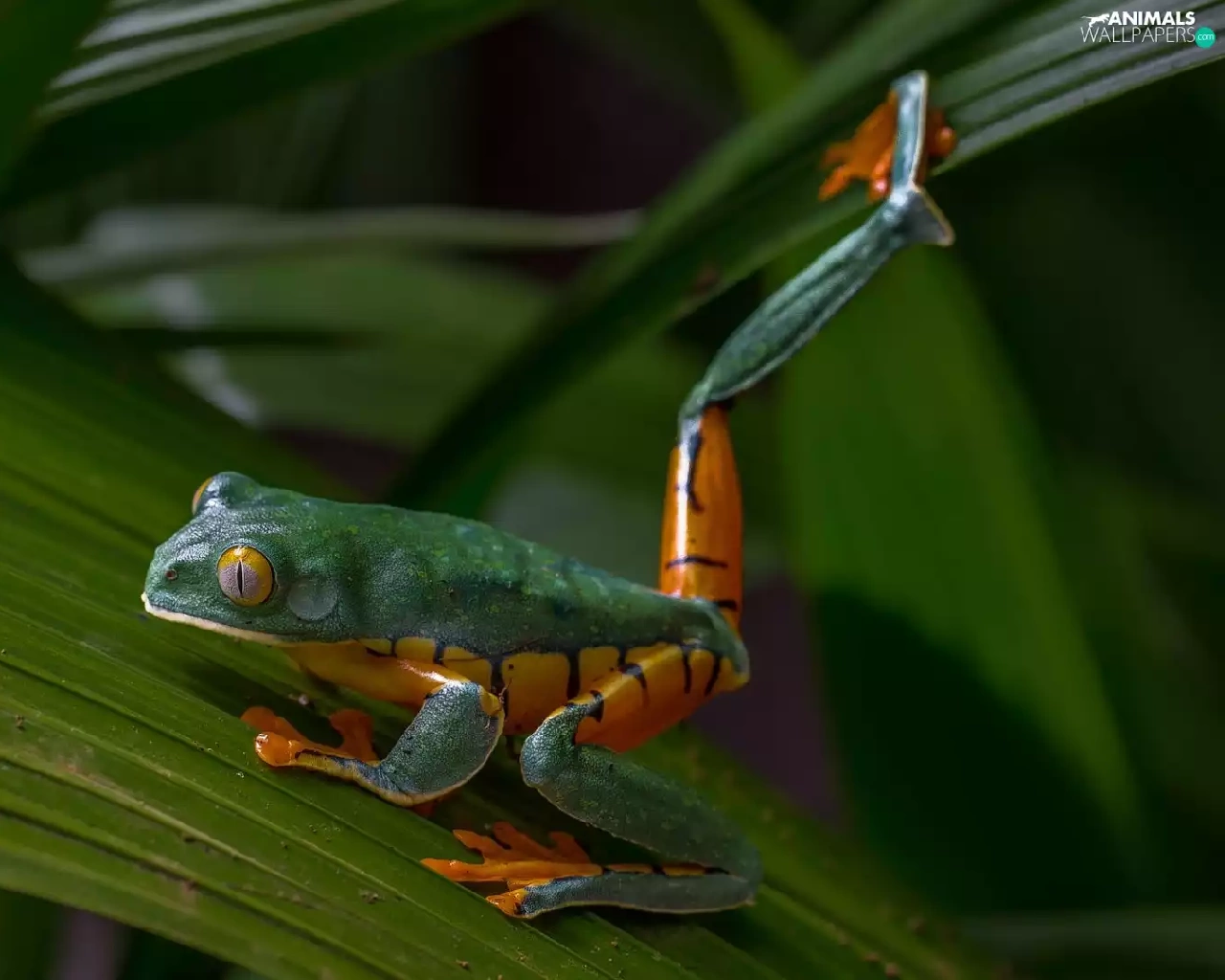 Leaf, Green-orange, strange frog
