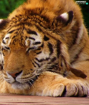 green, tiger, resting