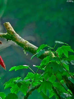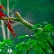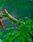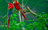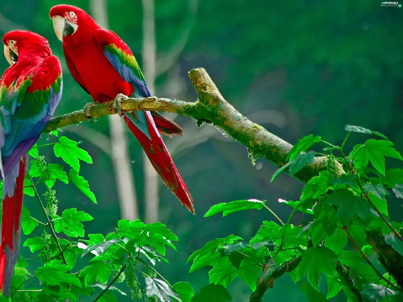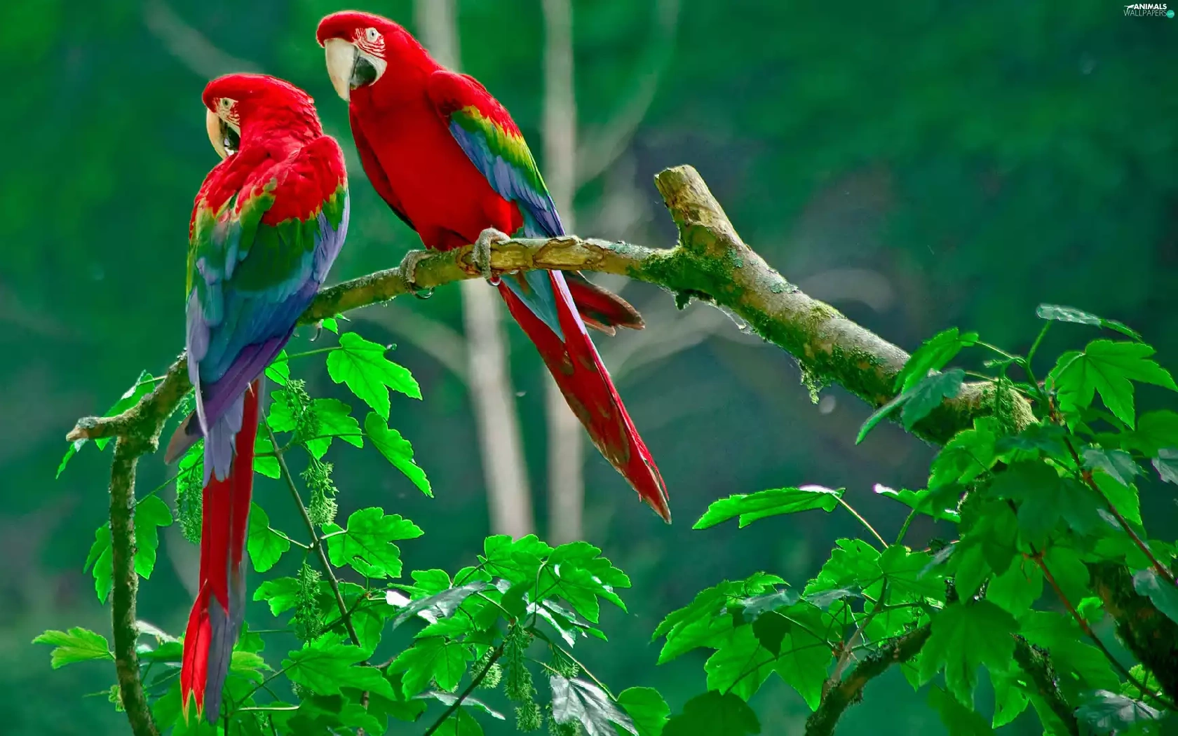Parrots, Leaf, red, green ones, Two