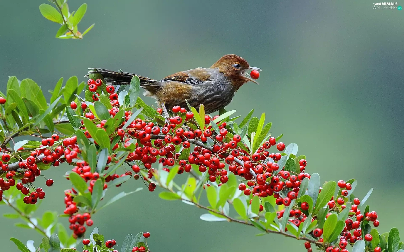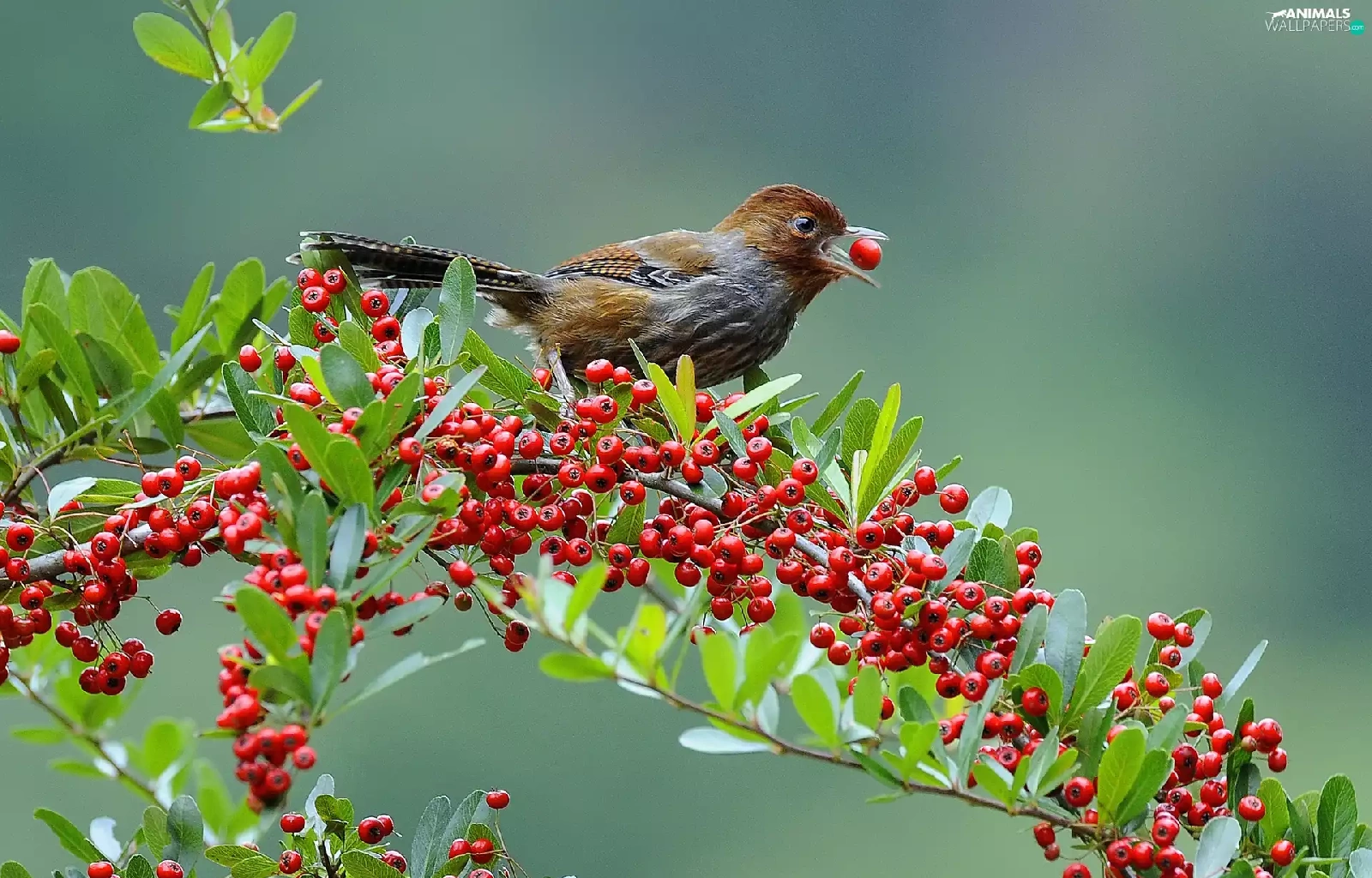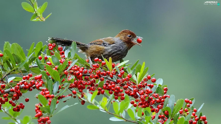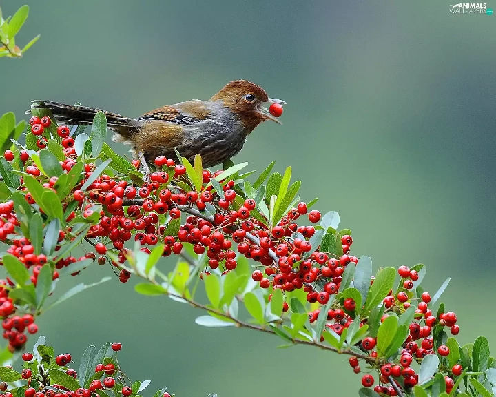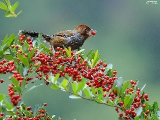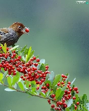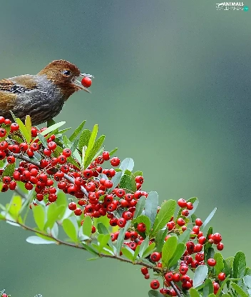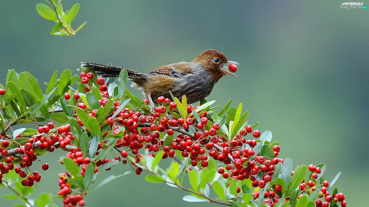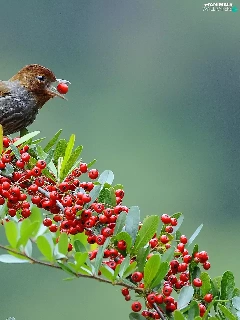 Brown Grey, Red, blueberries, birdies