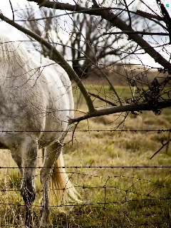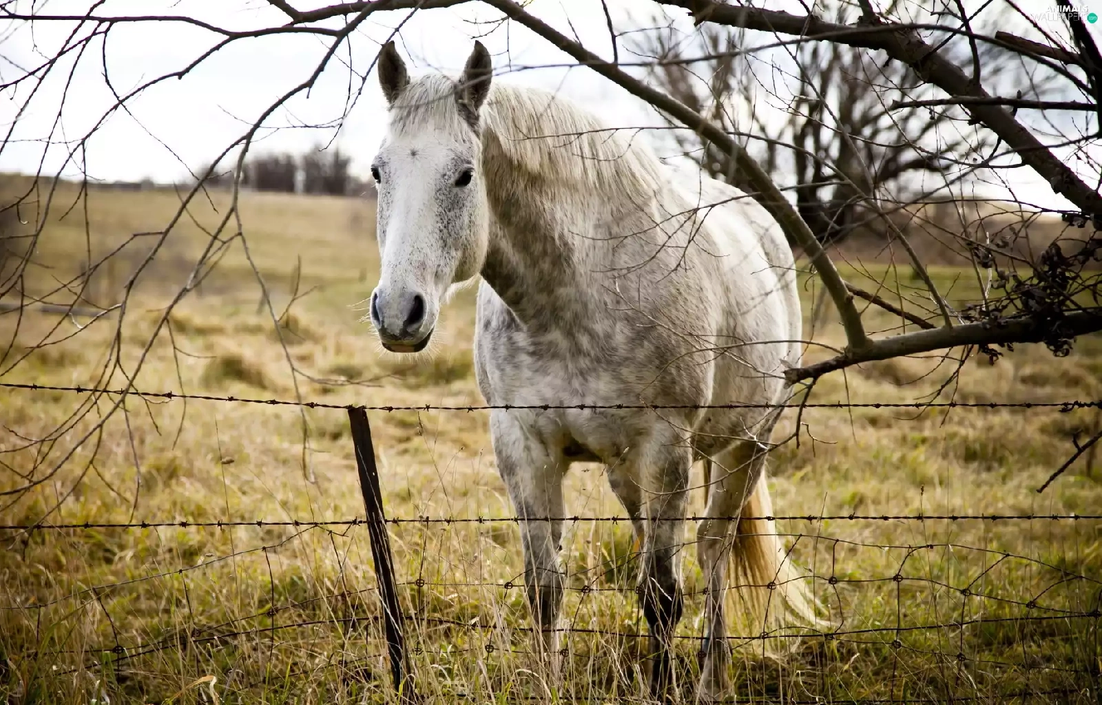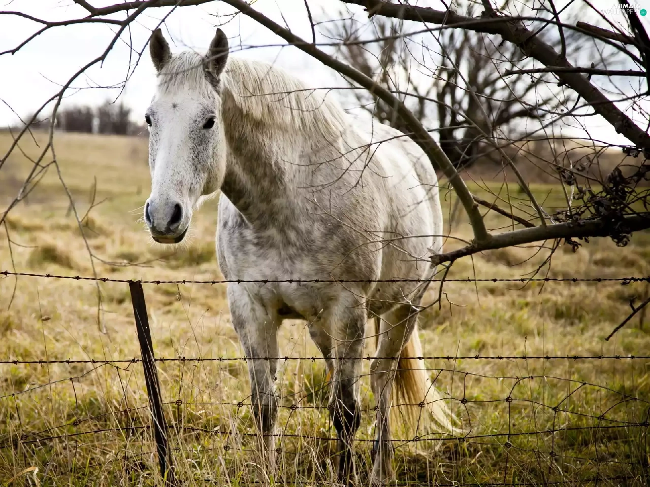 Horse, Meadow, fence, grizzle