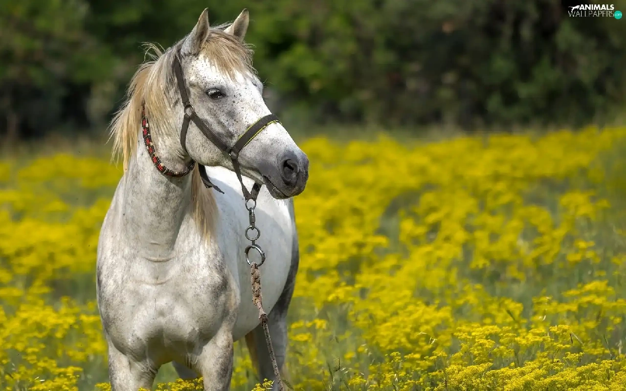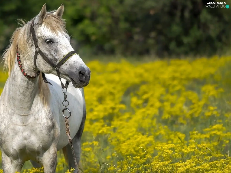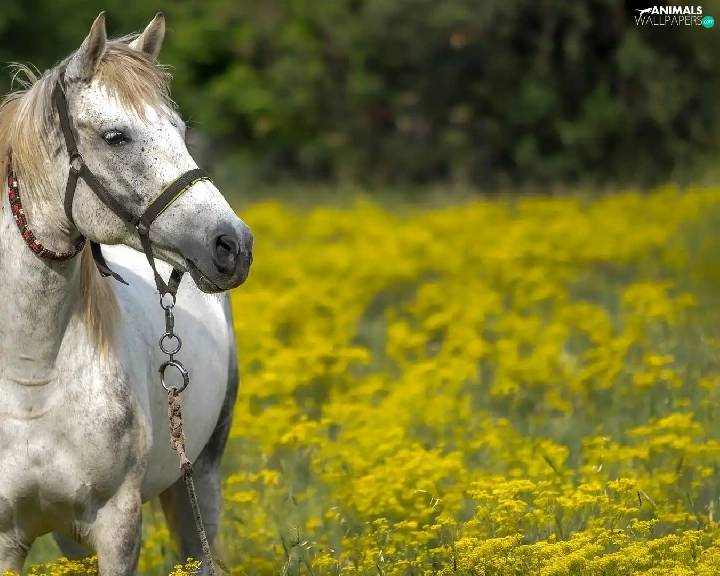 Horse, bridle, Meadow, grizzle
