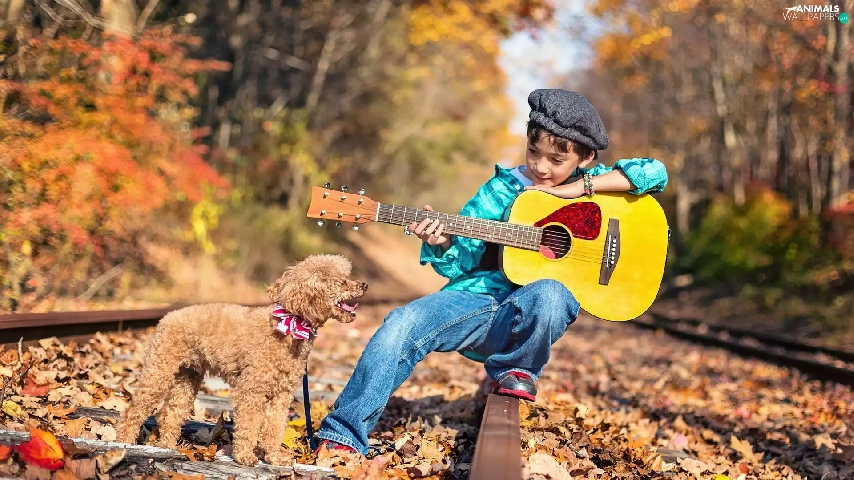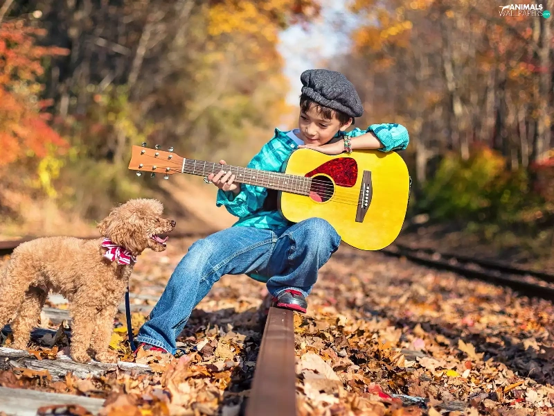 dog, boy, autumn, ##, poodle, Guitar