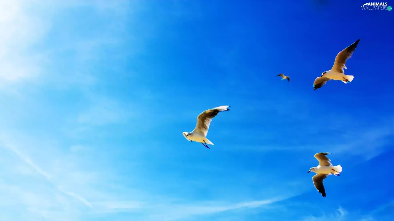 gulls, Sky, soaring