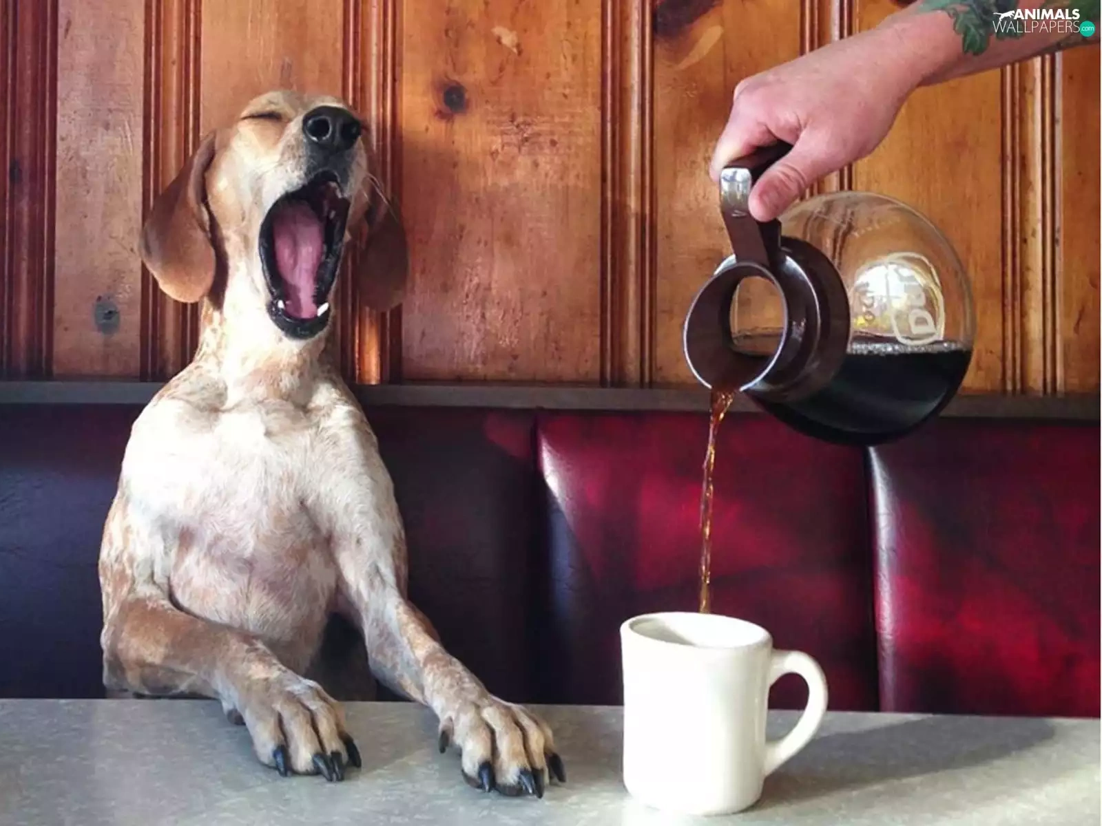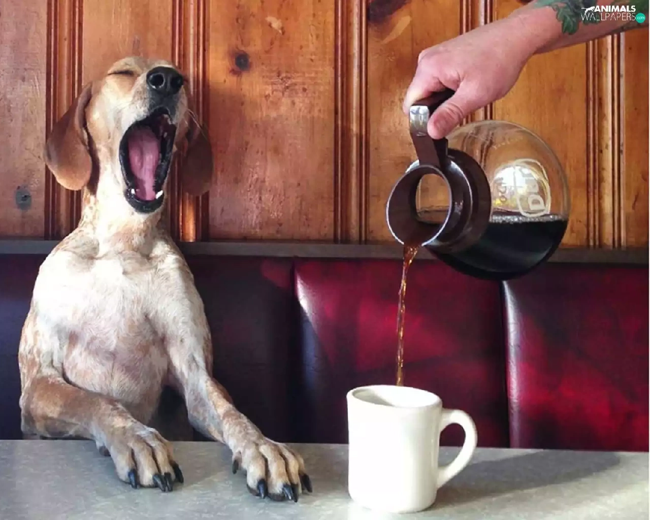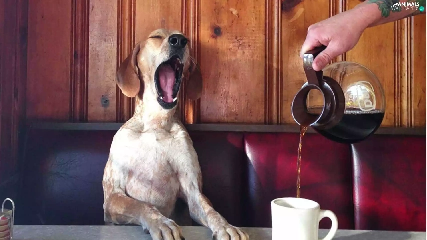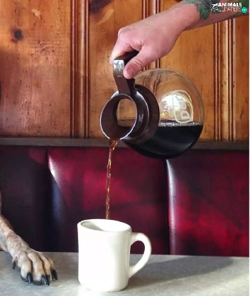 coffee, hand, Cup, jug, dog