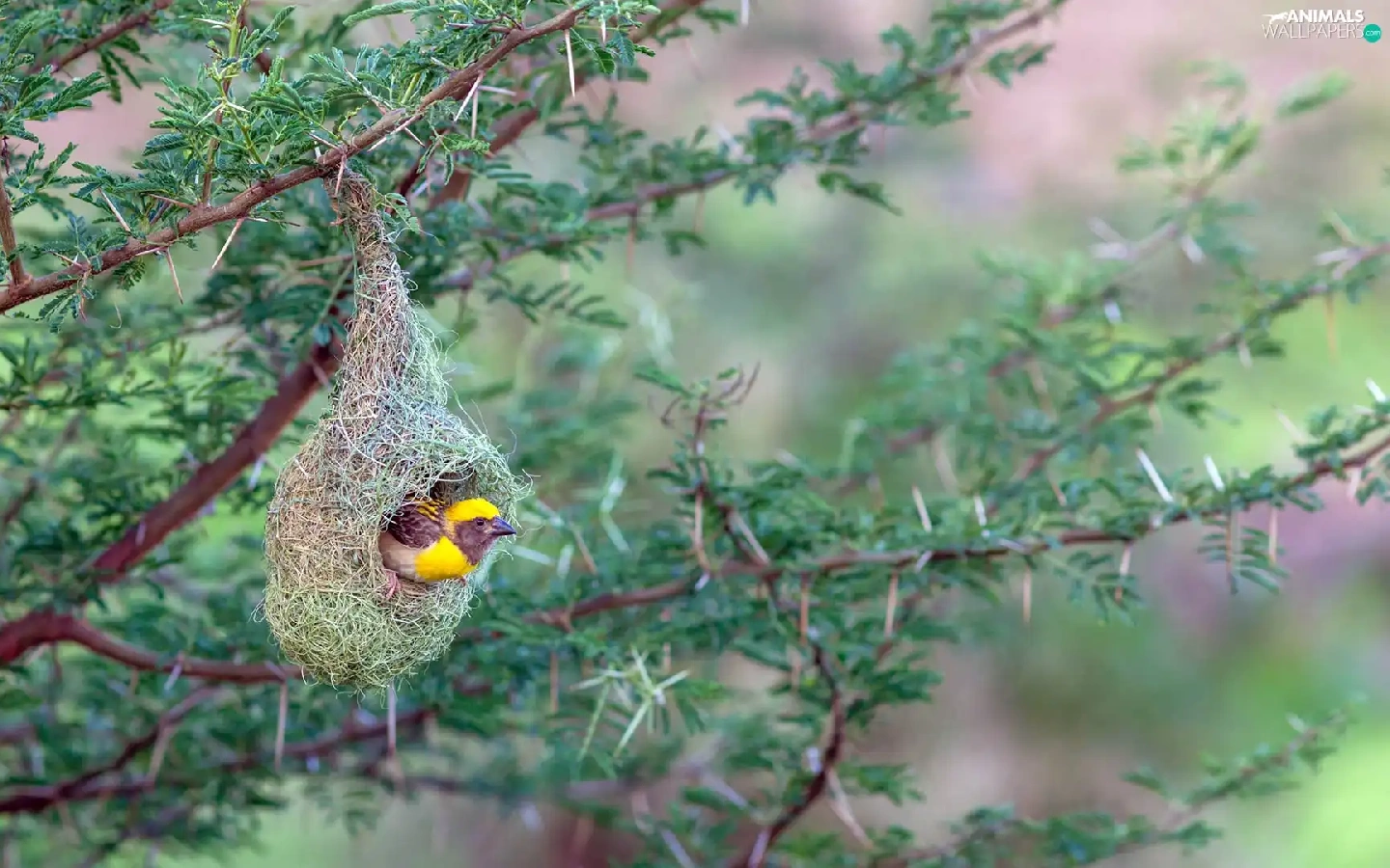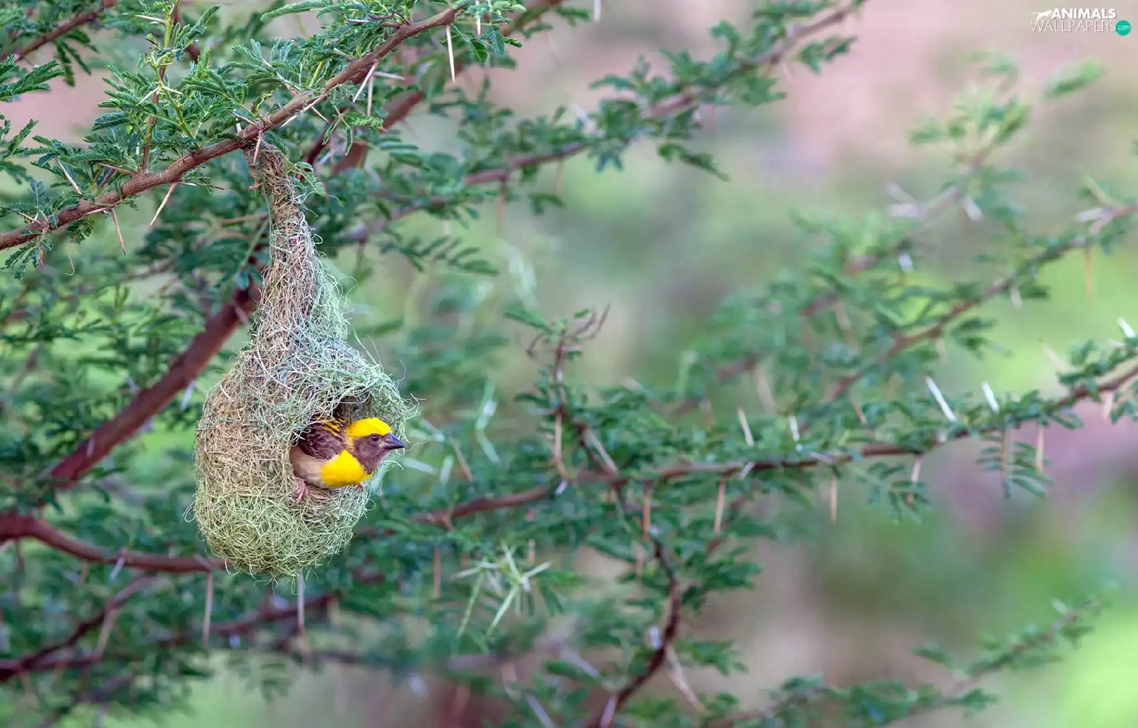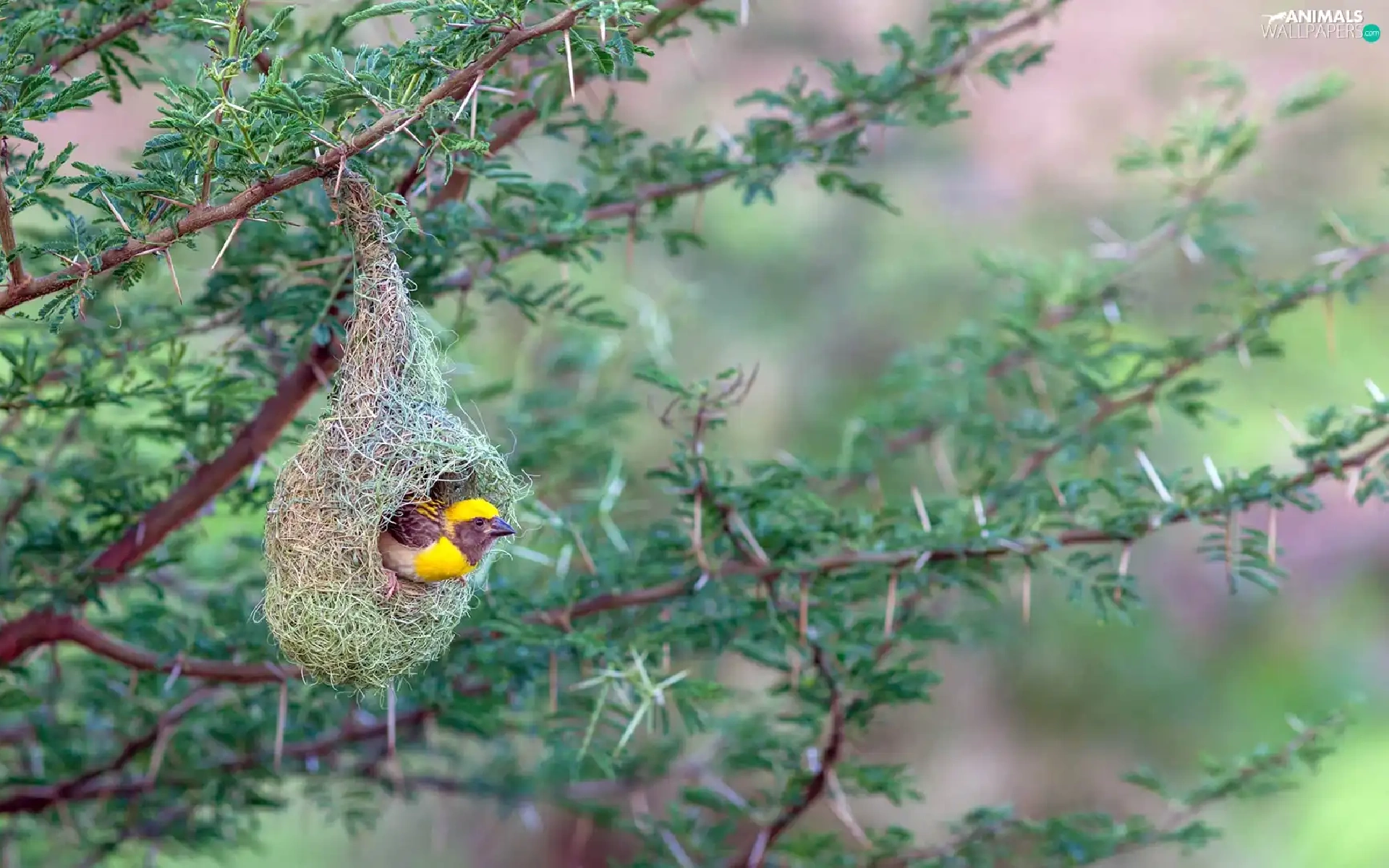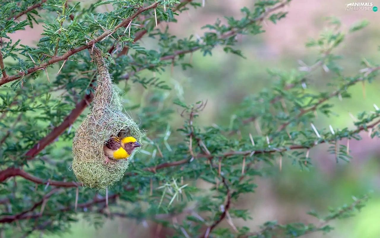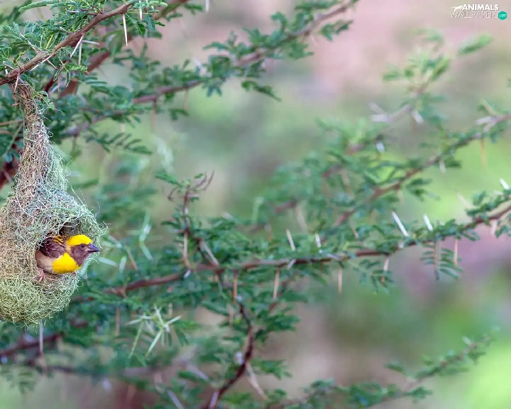 Bird, hanging, nest, weaver gilt