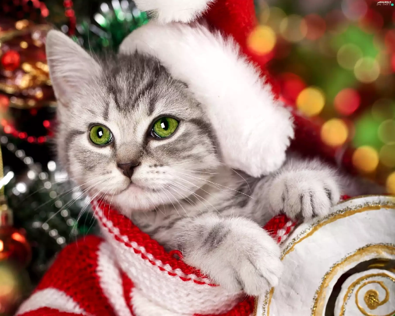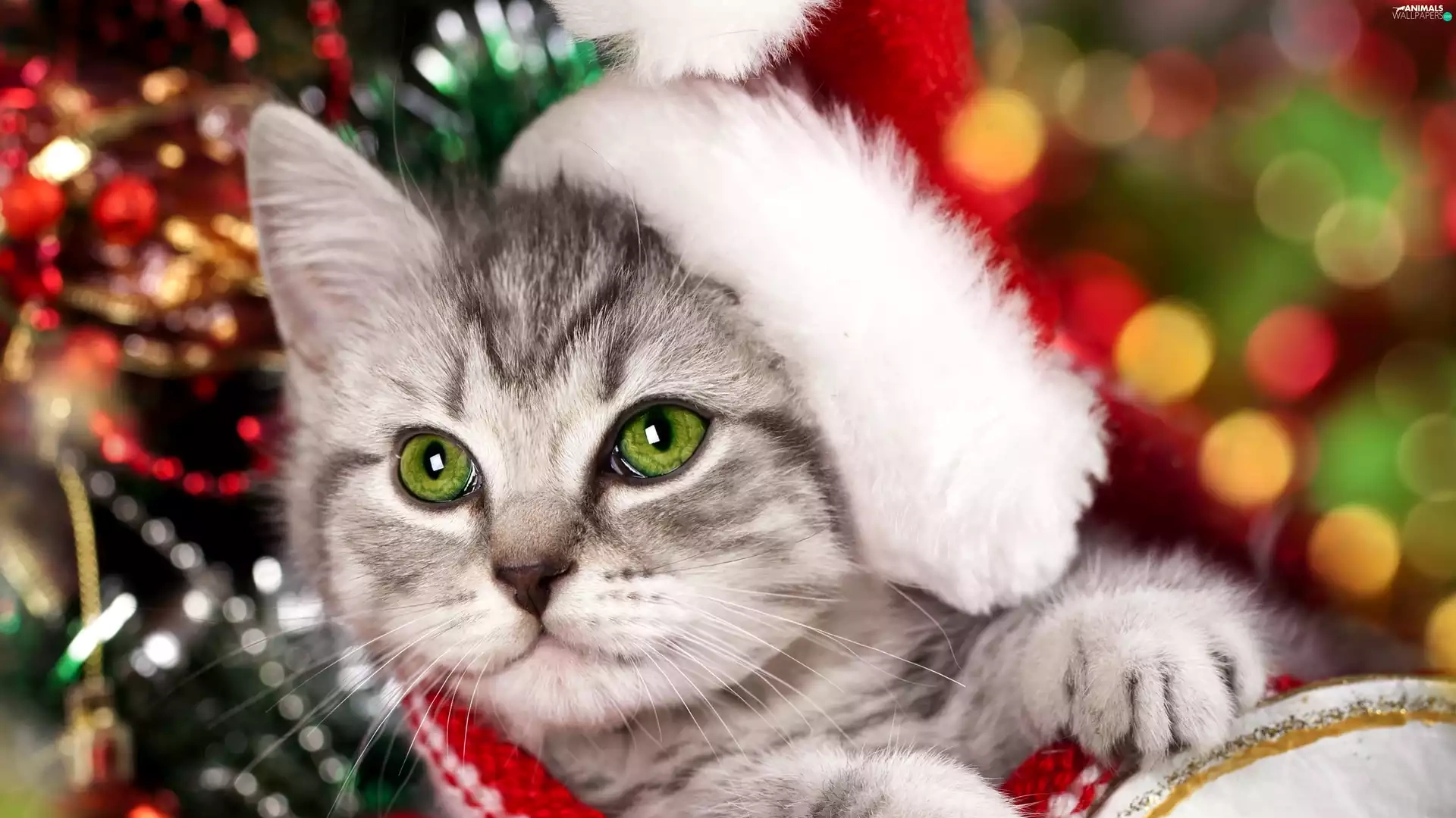 honeyed, Hat, christmas tree, kitten