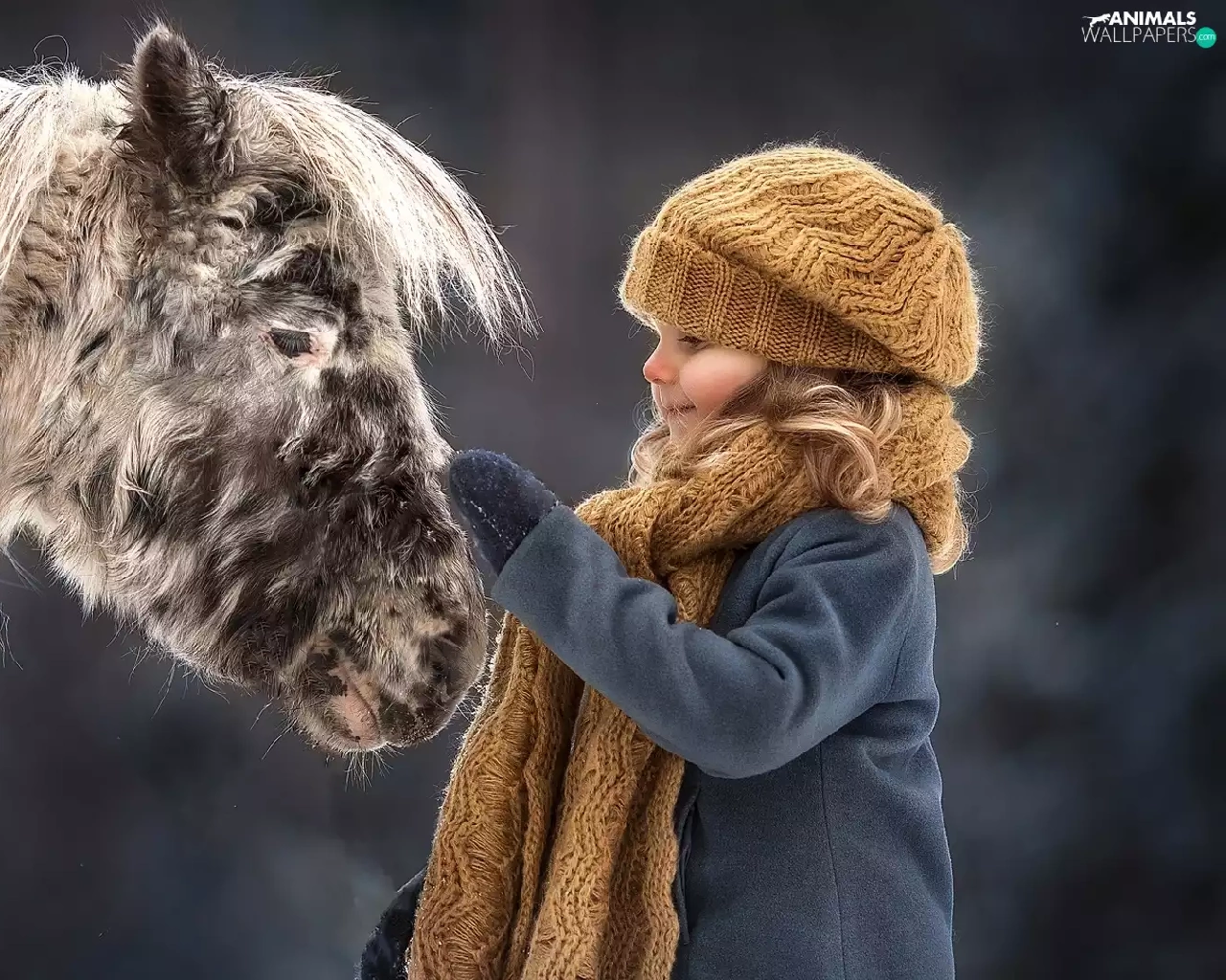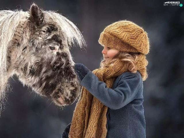 Horse, Shetland Pony, Hat, Scarf, girl