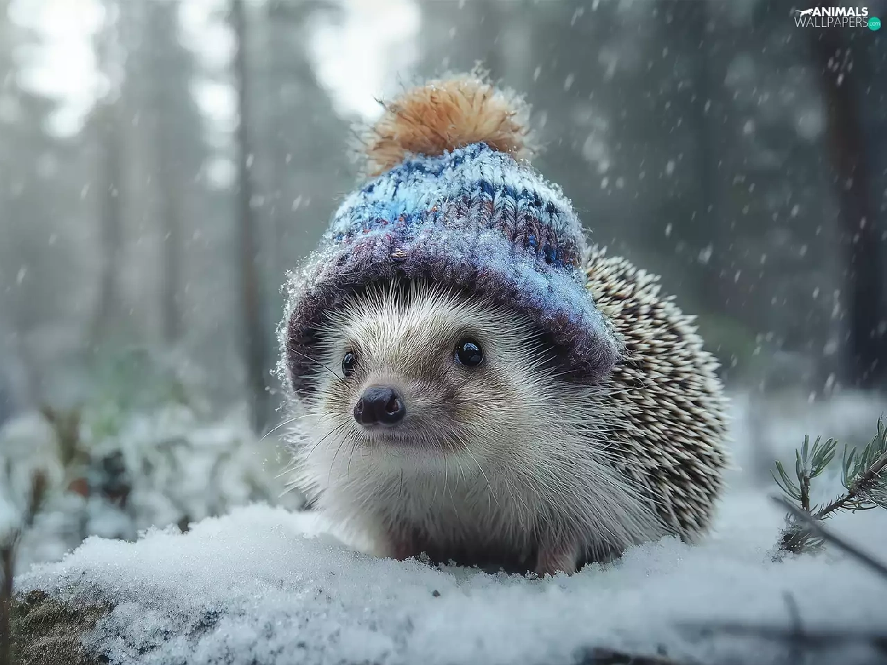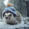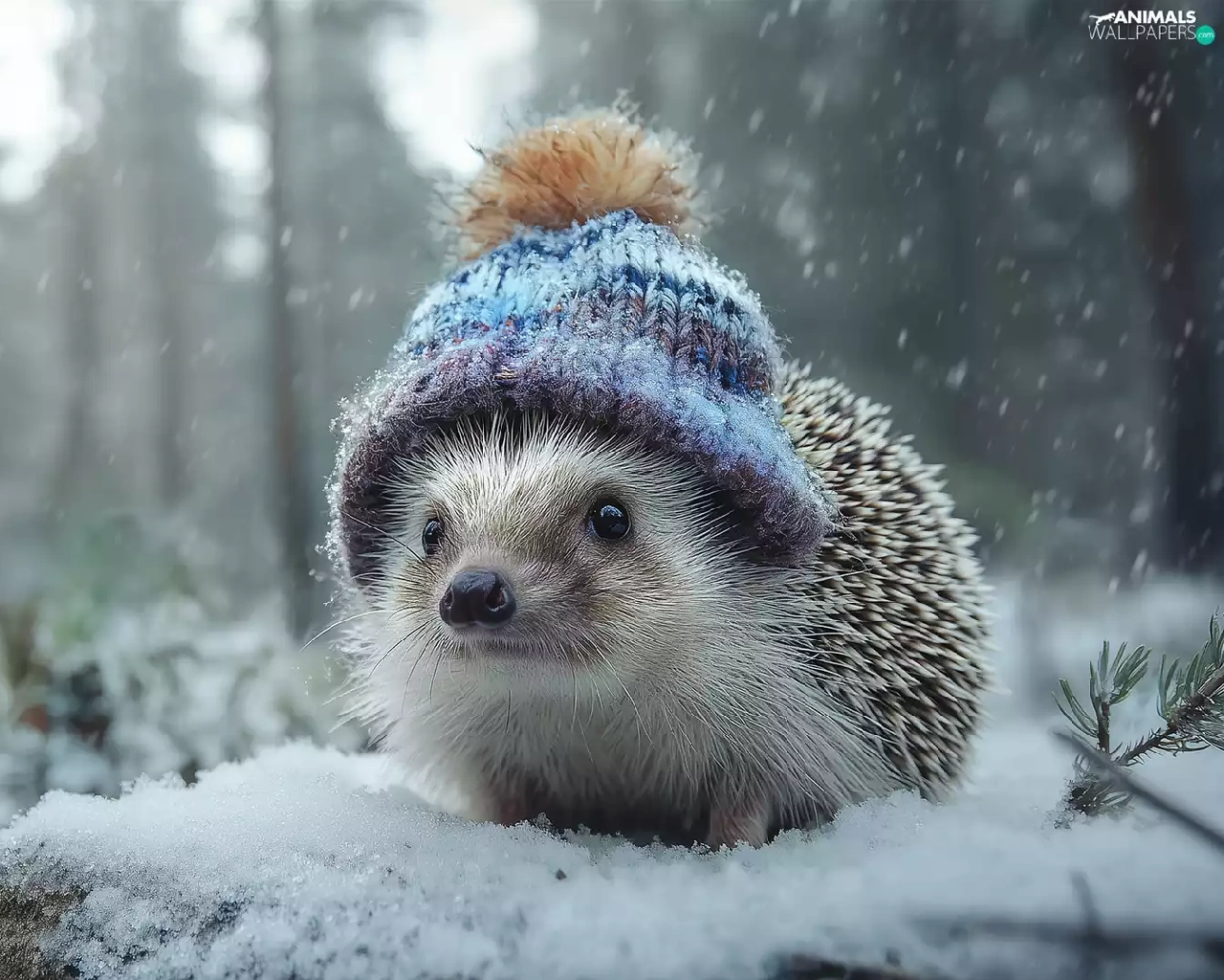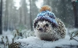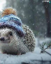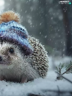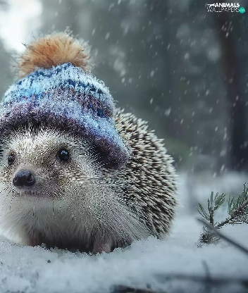 hedgehog, winter, graphics, Hat