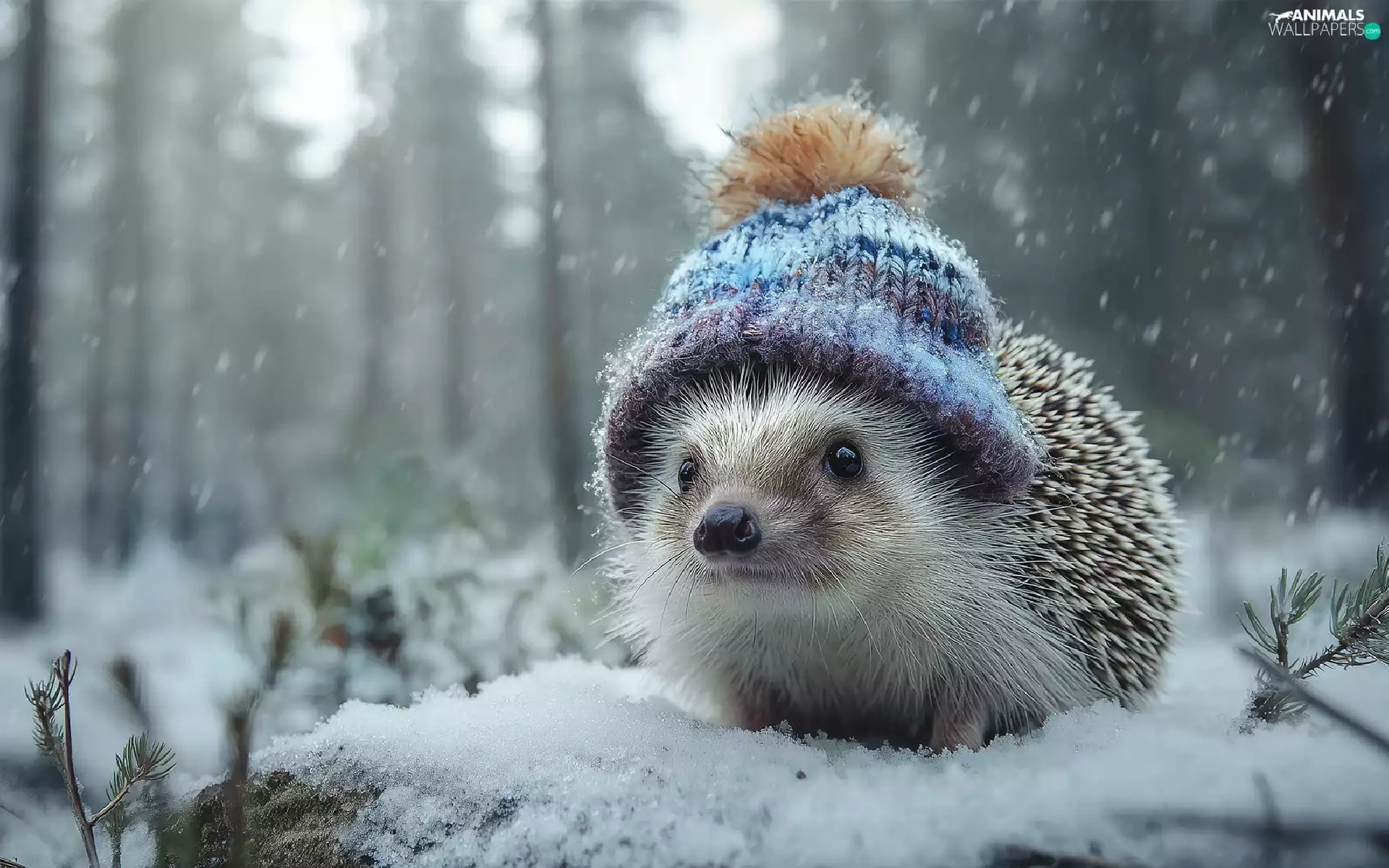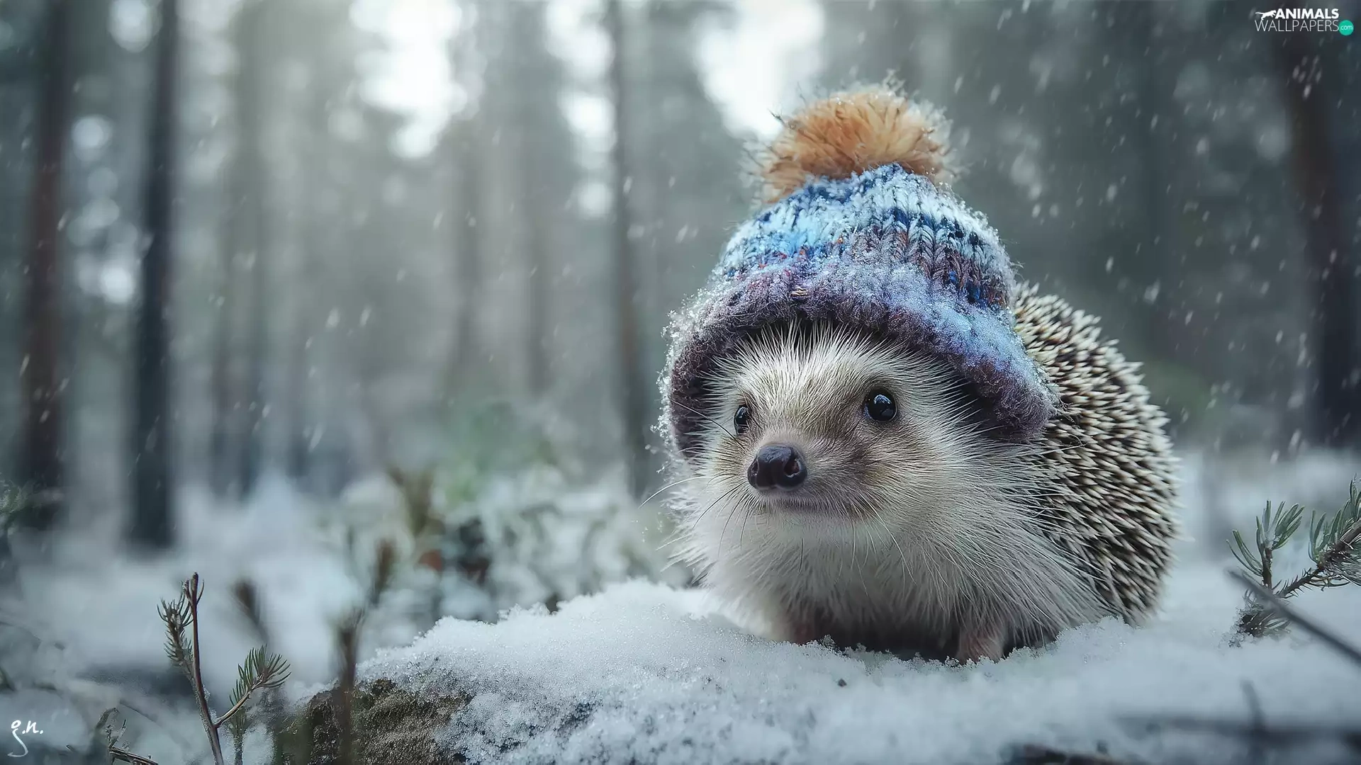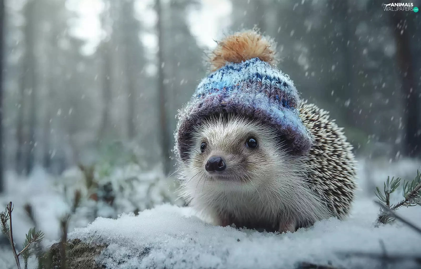 hedgehog, winter, graphics, Hat