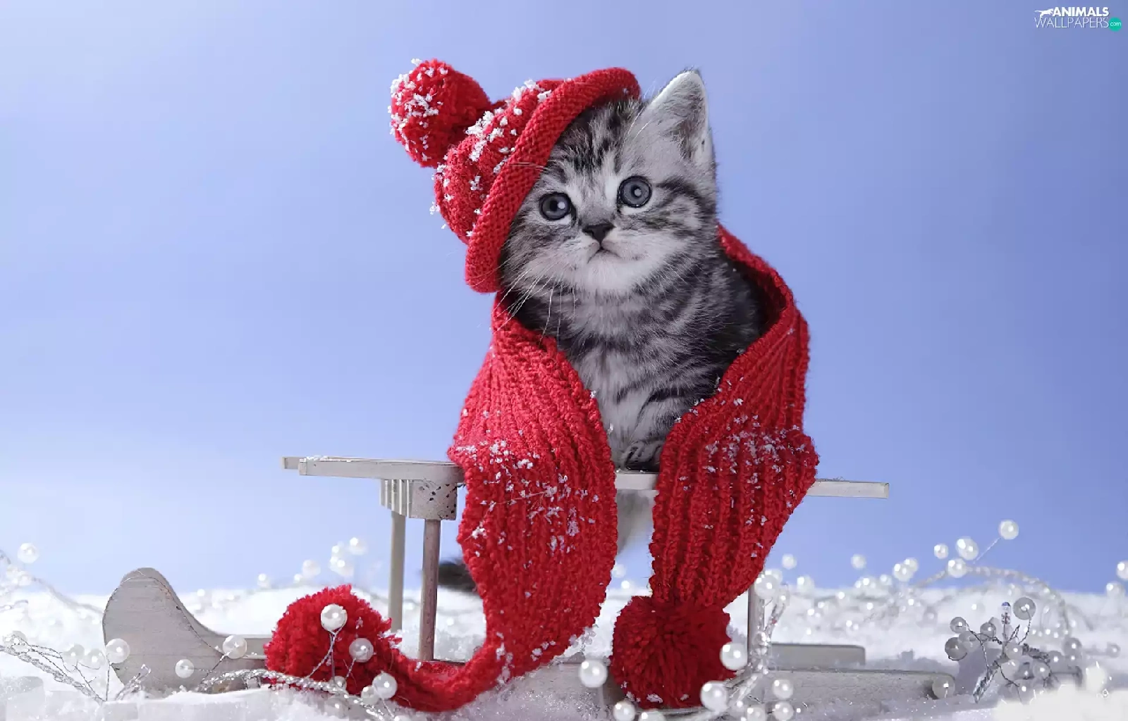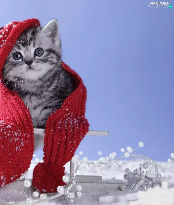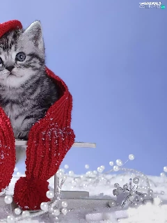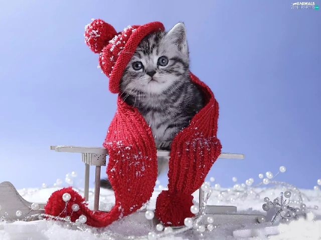 kitten, Scarf, winter, Hat